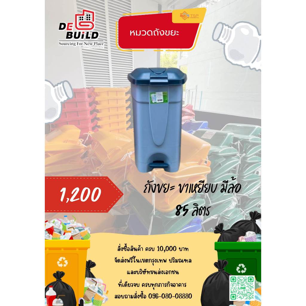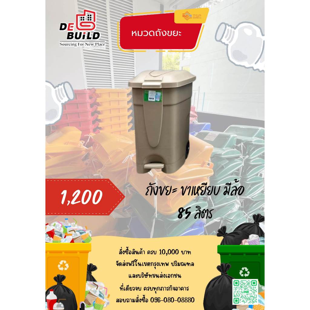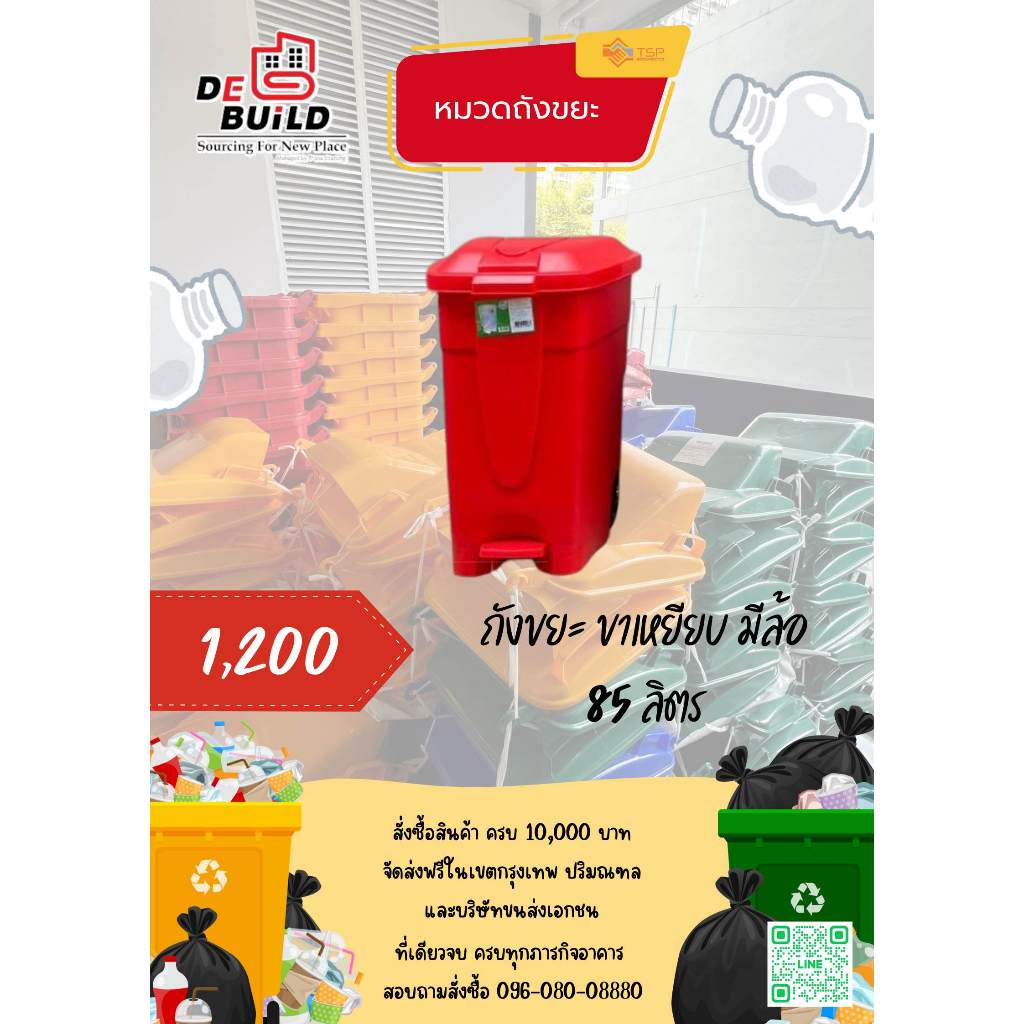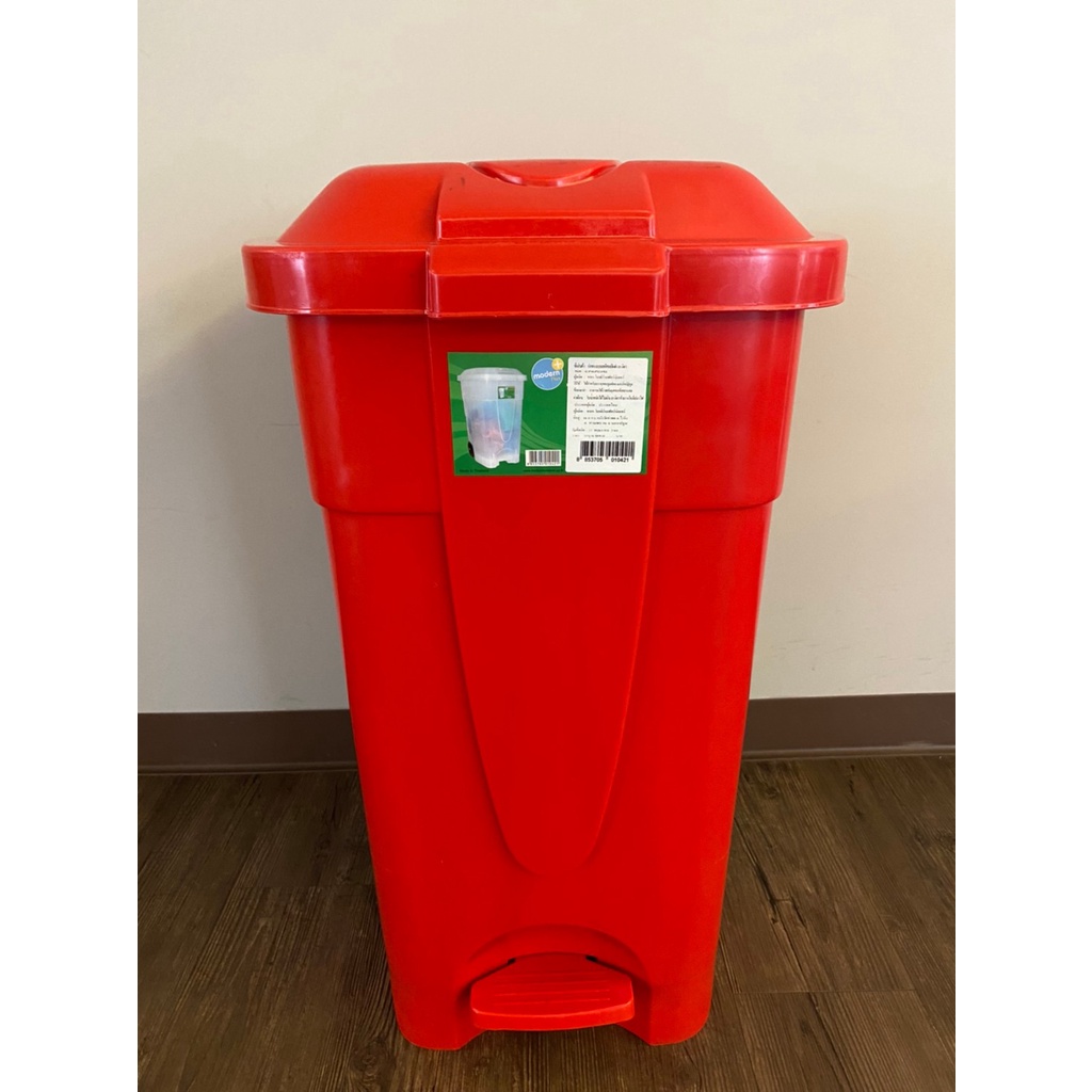 ถังขยะพลาสติก ขาเหยียบ มีล้อ 85 ลิตร สี แดง ฟ้า น้ำตาล