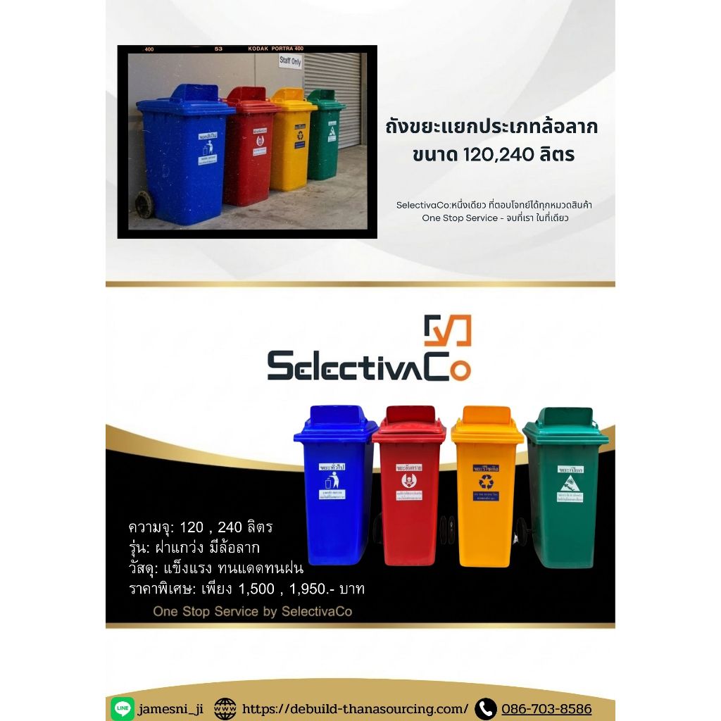ถังขยะพลาสติก 120 ลิตร มีล้อ แยกประเภท