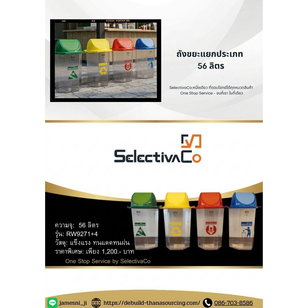 ถังขยะหกเหลี่ยม ใส 56 ลิตร แยกประเภท มีตัวต่อ (RW9271+4) ธนาซอร์สซิ่ง ถังขยะส่วนกลาง รวมภาษีVAT7%