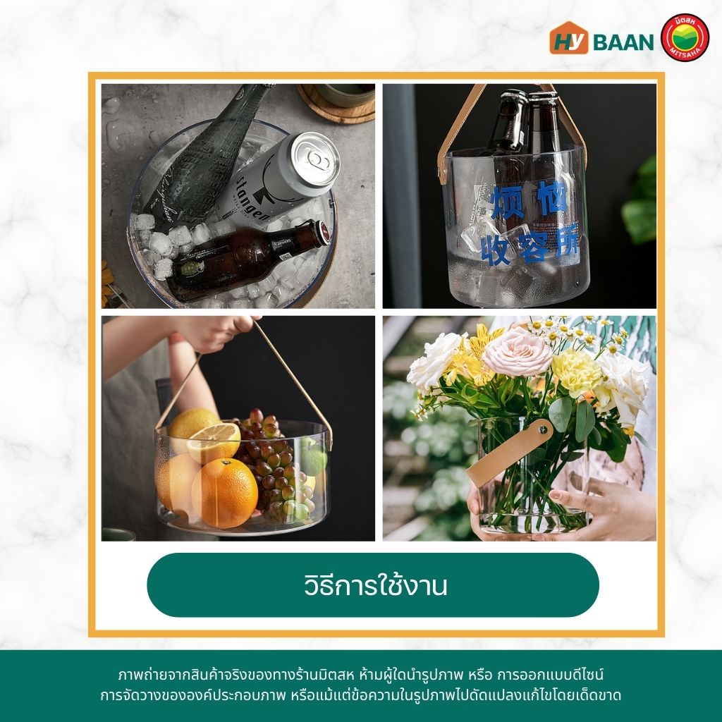 ถังใส่น้ำแข็ง สีใส ขนาด 13x13cm, 21x10cm Plastic bucket with handle ถัง พลาสติก แช่ ไวน์ ใส่ ดอกไม้ น้ำแข็ง มิตสห Hybaan