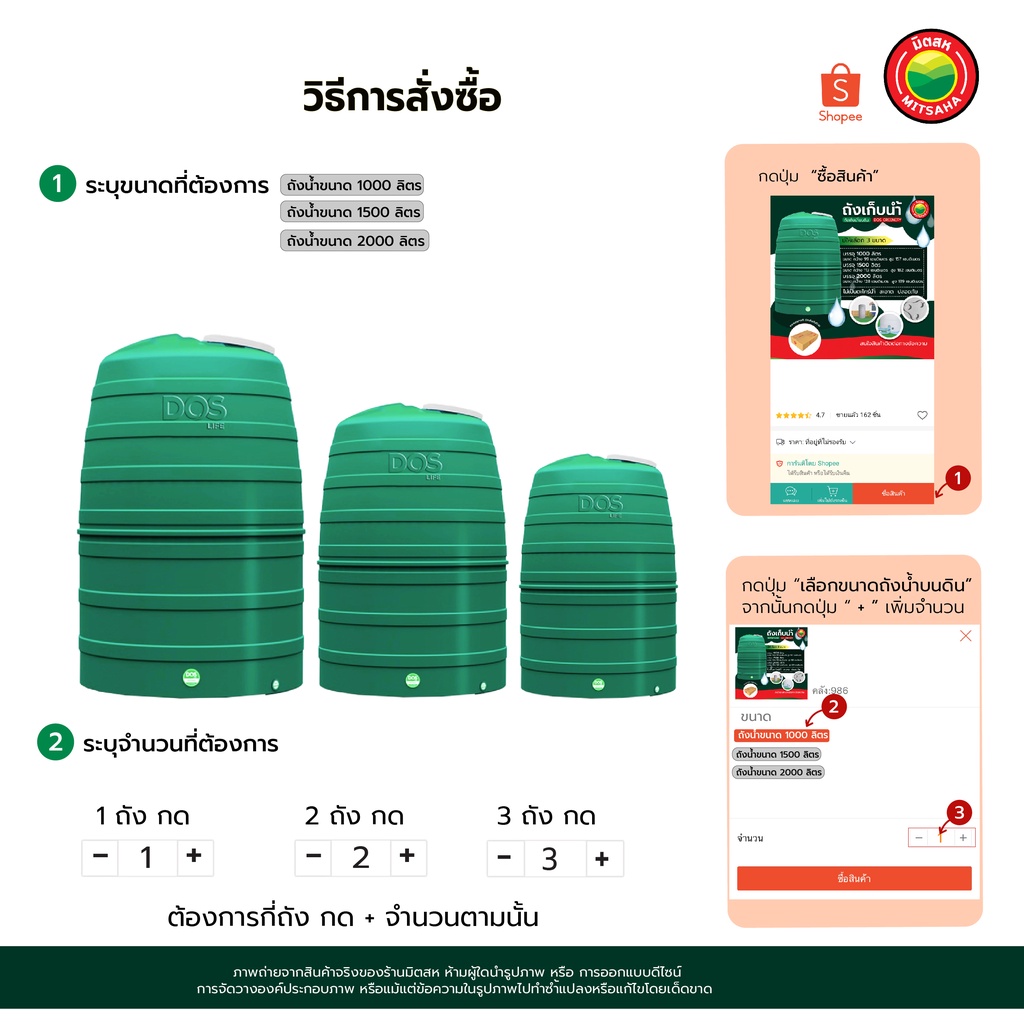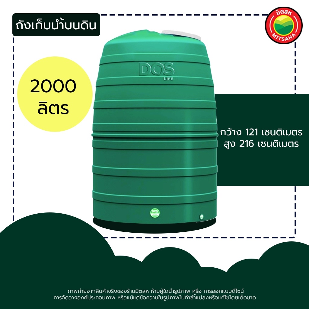 ถัง เก็บน้ำ ยี่ห้อ DOS รุ่น GREENERY ขนาด 1000, 1500, 2000 ลิตร WATER STORAGE TANK แทงค์น้ำ ถังเก็บน้ำดอส ถังน้ำ มิตสห