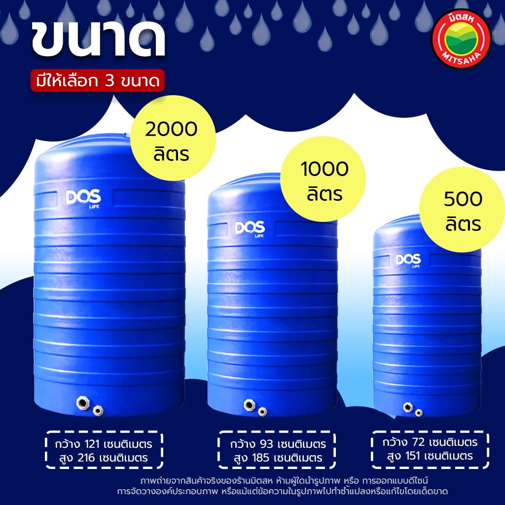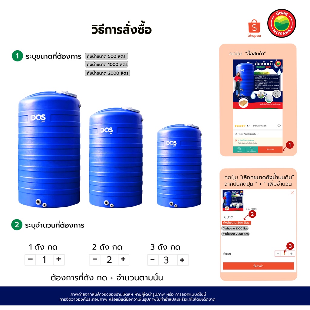 ถัง เก็บน้ำ ยี่ห้อ DOS รุ่น ICE ขนาด 500, 1000 ลิตร WATER STORAGE TANK แทงค์น้ำ ถังเก็บน้ำดอส ที่เก็บน้ำบนดิน มิตสห