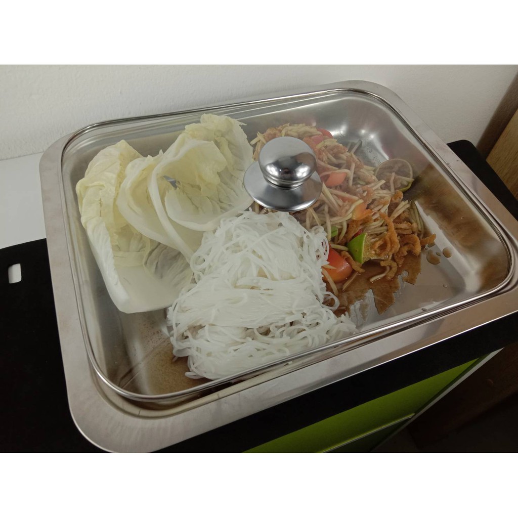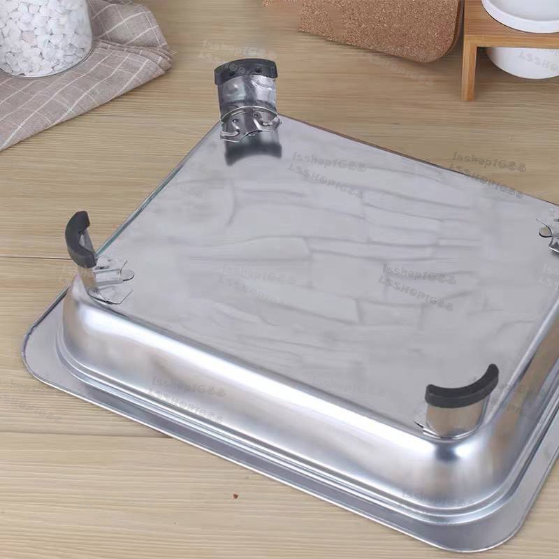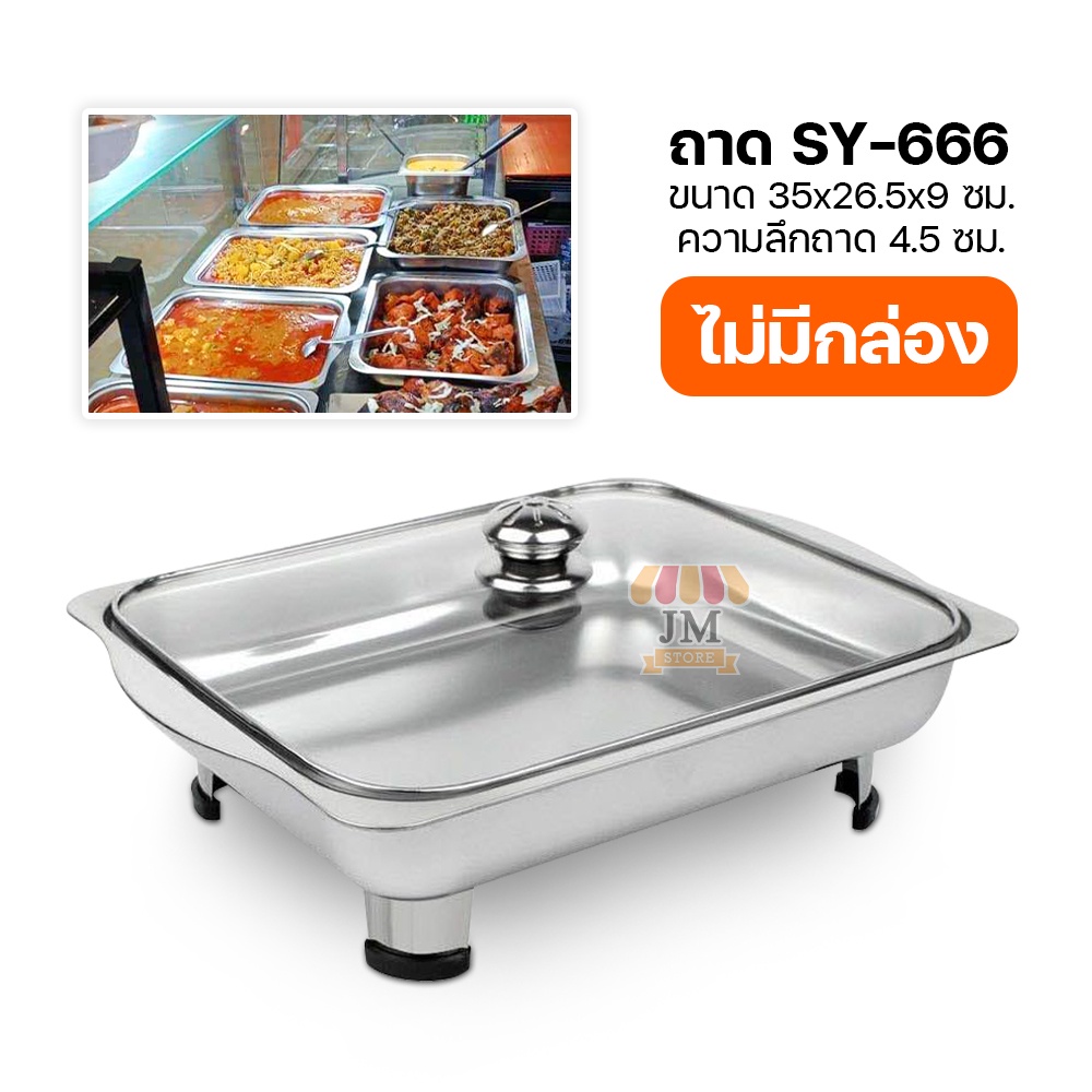 ถาดสแตนเลส SY-666 พร้อมฝาแก้วและขาตั้ง บุฟเฟ่ต์ ถนอมอาหาร คุณภาพดี ถาดขายข้าวแกง ใส่อาหาร ขนม ซูชิ ผลไม้ ผักสด