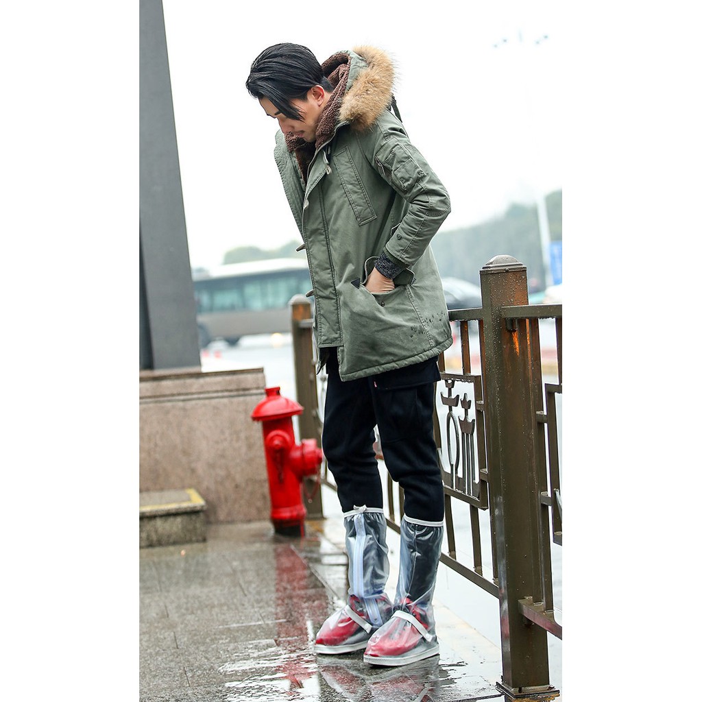 รองเท้ากันฝน แบบยาว ป้องกันรองเท้าเปียกได้ 100 % แบบหนาพื้นสีขาว