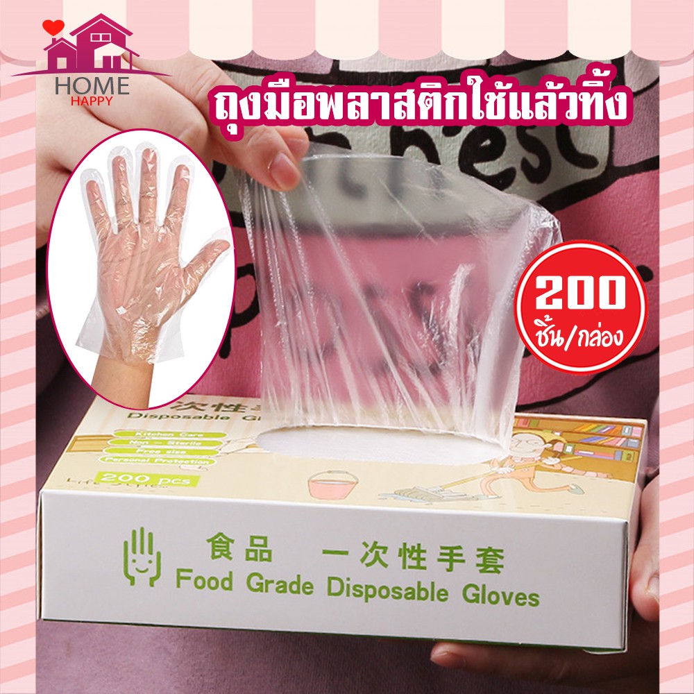 ถุงมือพลาสติกใช้แล้วทิ้ง (*แบบกล่อง 200 ชิ้น*)แบบกล่อง ขนาดบรรจุ 200 ชิ้น อุปกรณ์เครื่องใช้ ในบ้าน