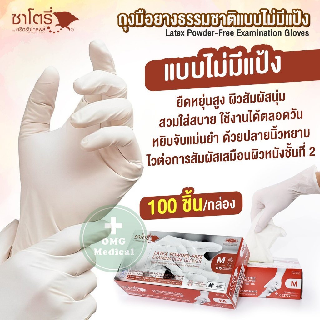 ถุงมือยางธรรมชาติ แบบไม่มีแป้ง ศรีตรังโกลฟส์-ซาโตรี่ SATORY (กล่องน้ำตาล) ถุงมือแพทย์ อเนกประสงค์ [1 กล่อง/100 ชิ้น]
