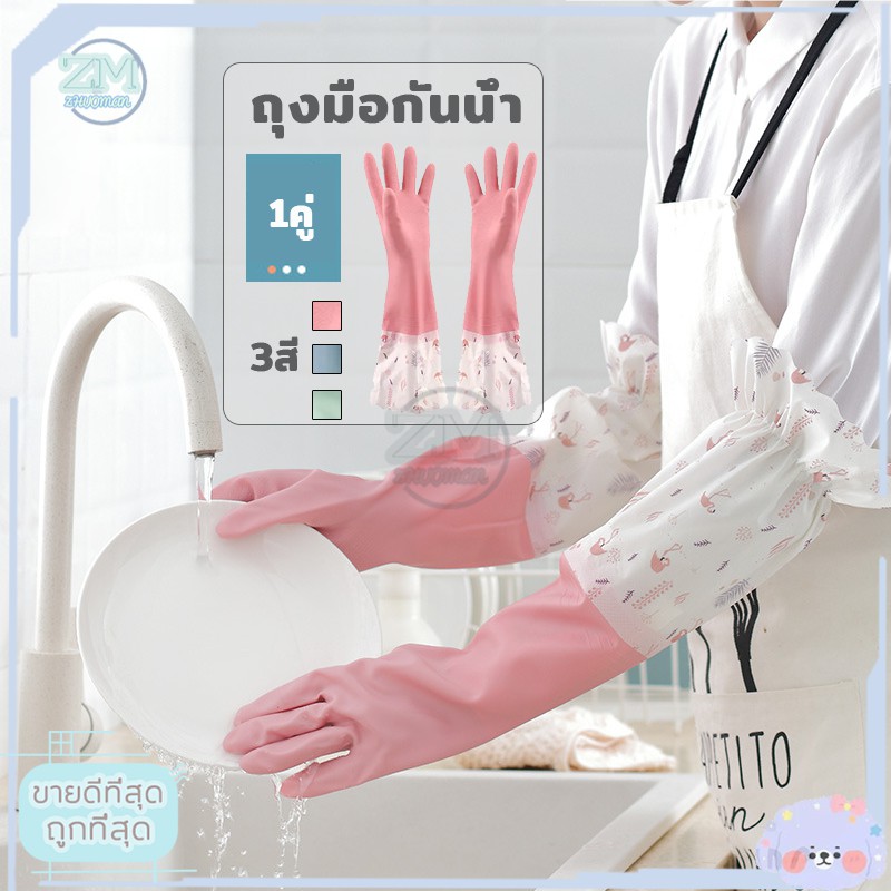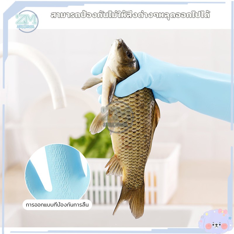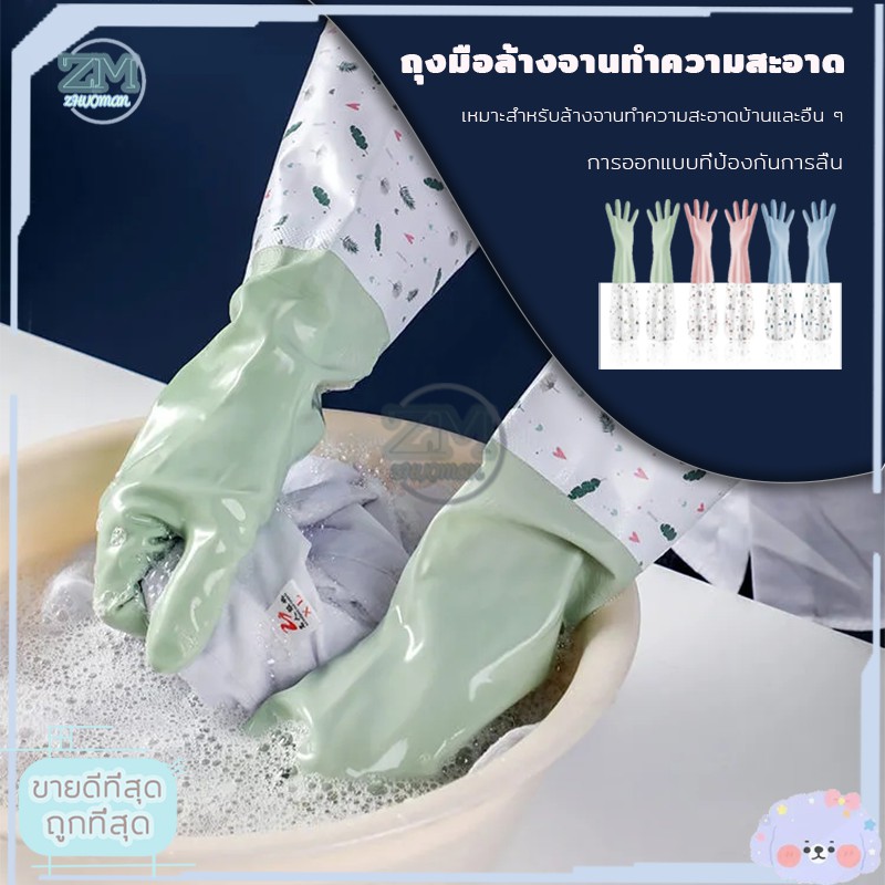 ถุงมือล ้างจาน วัสดุยาง ทำความสะอาด ซิลิโคนไม่แตกง่ายใช้งานสะดวก กันน้ำ