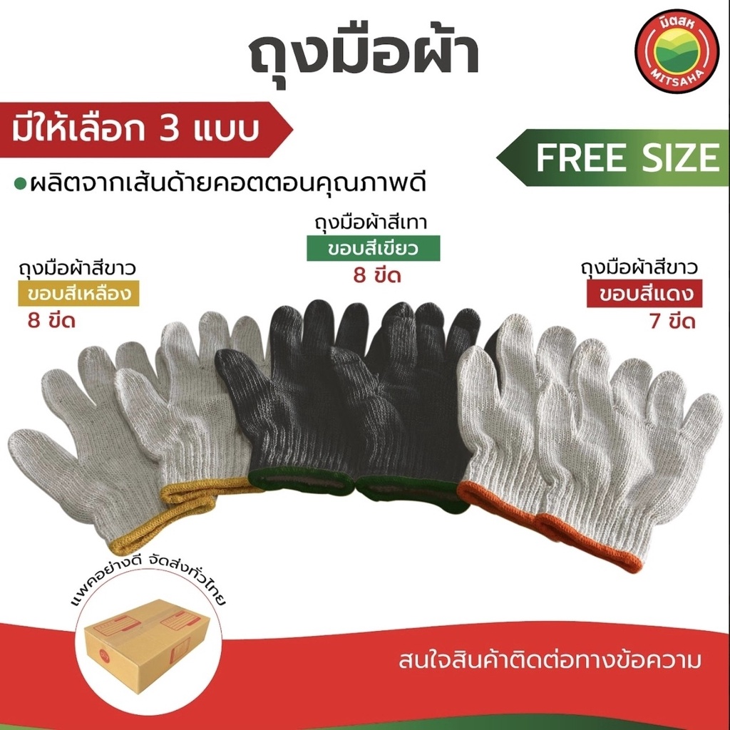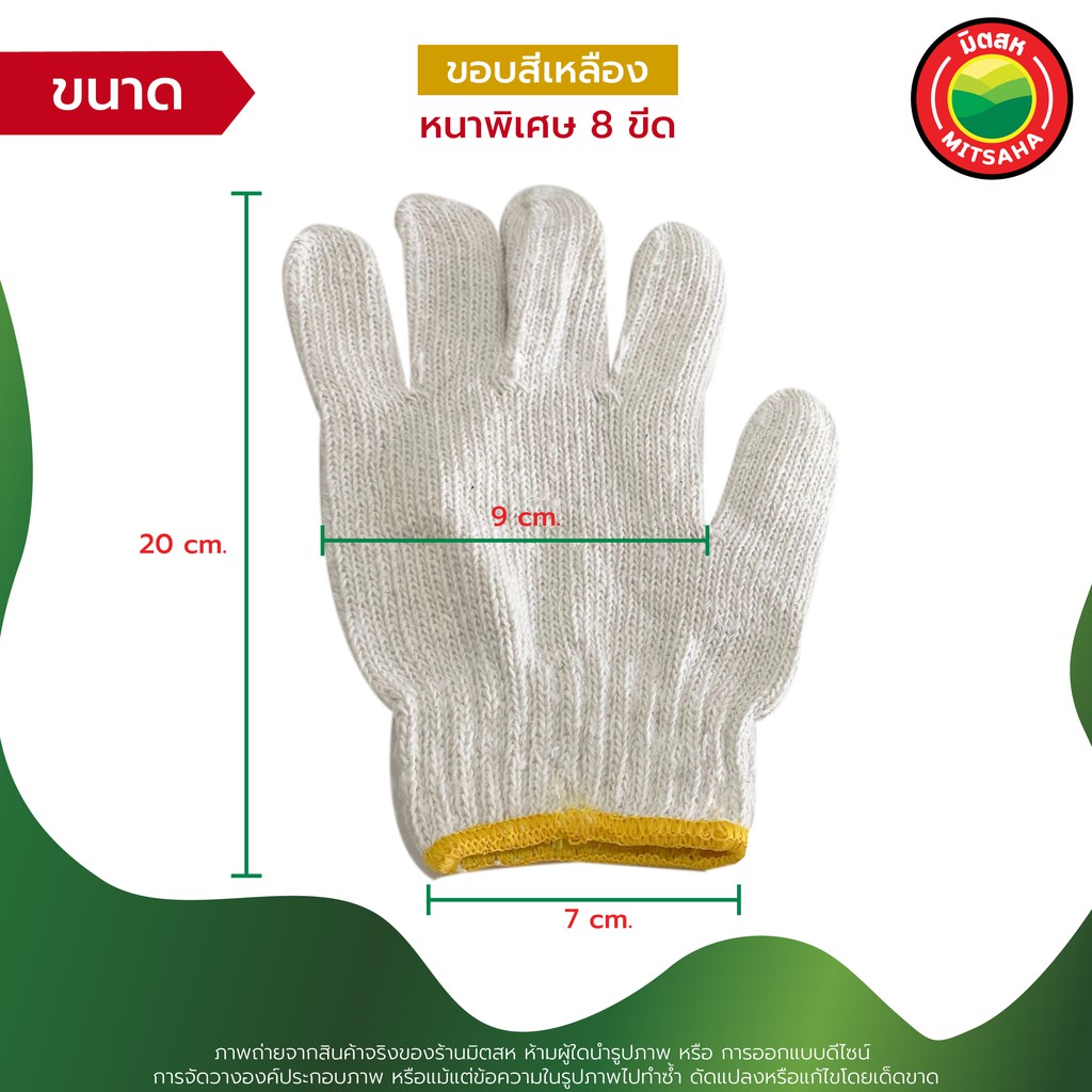 ถุงมือผ้า AAA ถัก สีขาว,สีเทา ขอบสี แบบหนา ฟรีไซส์ (ขายเป็นคู่) Cotton Gloves White, Black ถุงมือ ผ้า ฝ้าย ทอ ช่าง มิตสห