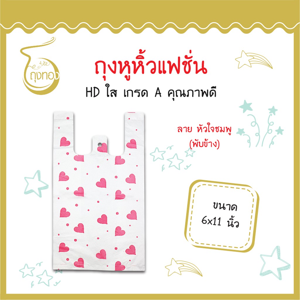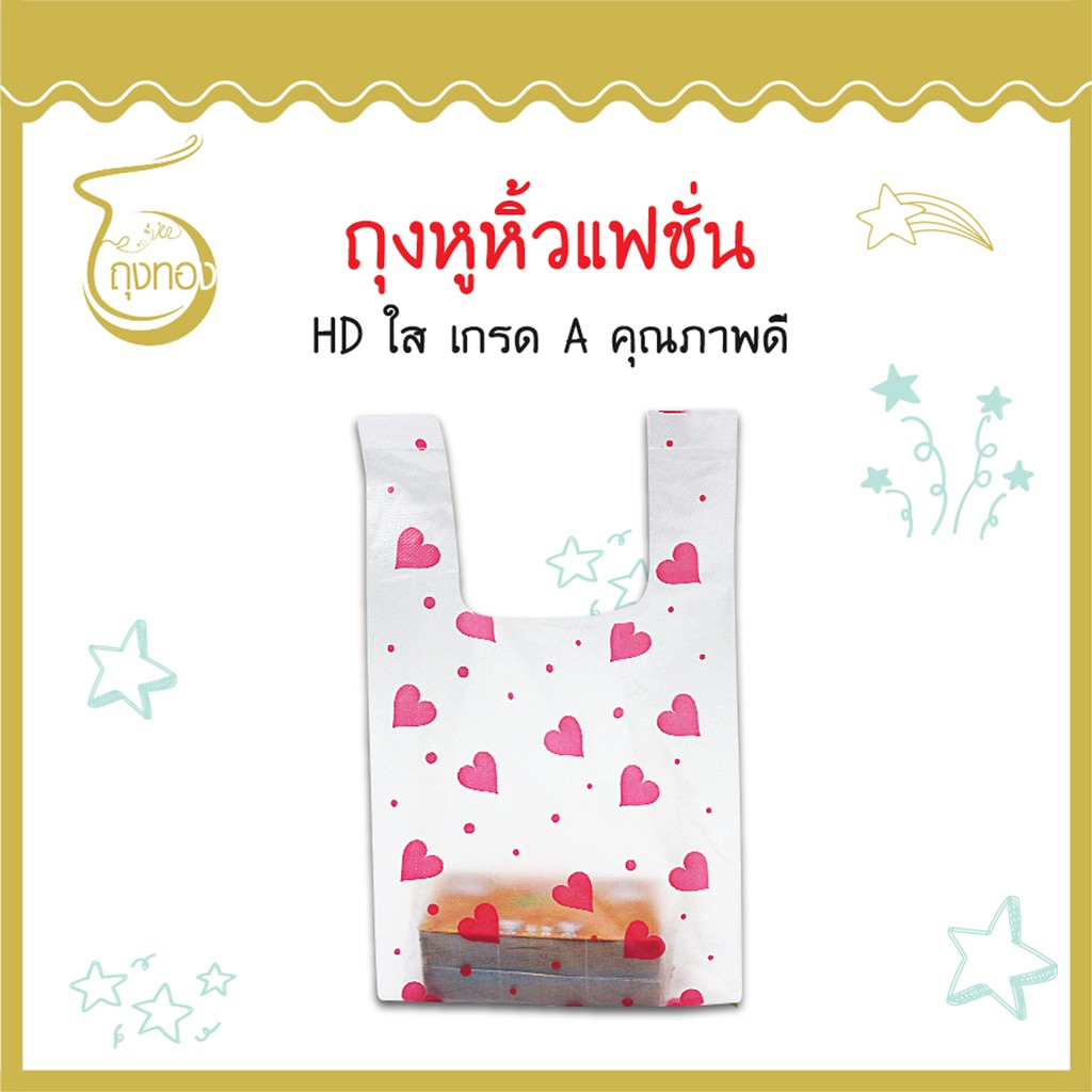 ถุงแฟชั่นหูหิ้ว *ลาย หัวใจชมพู* แฟชั่น ลายน่ารัก สีสันสวยงาม ราคาดี
