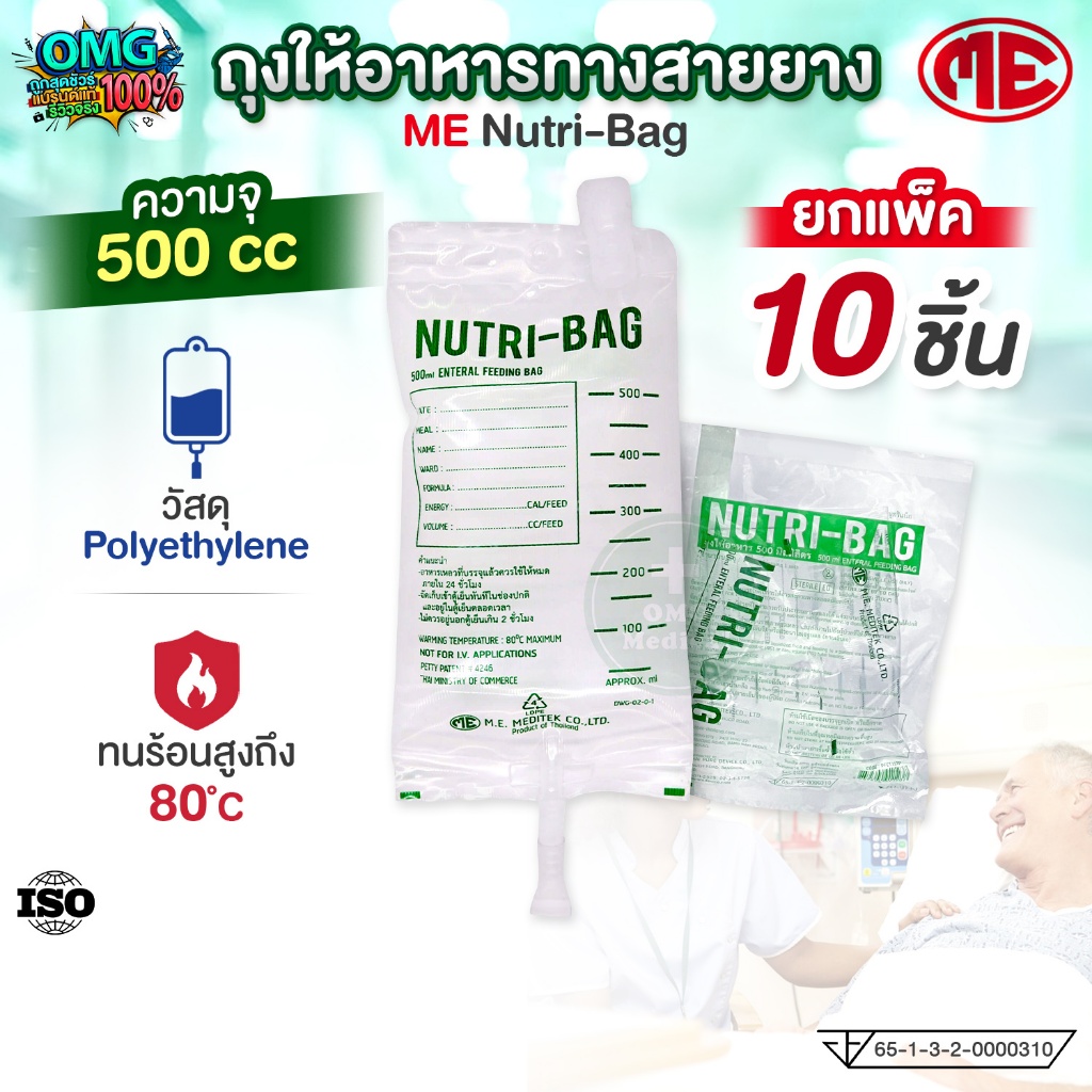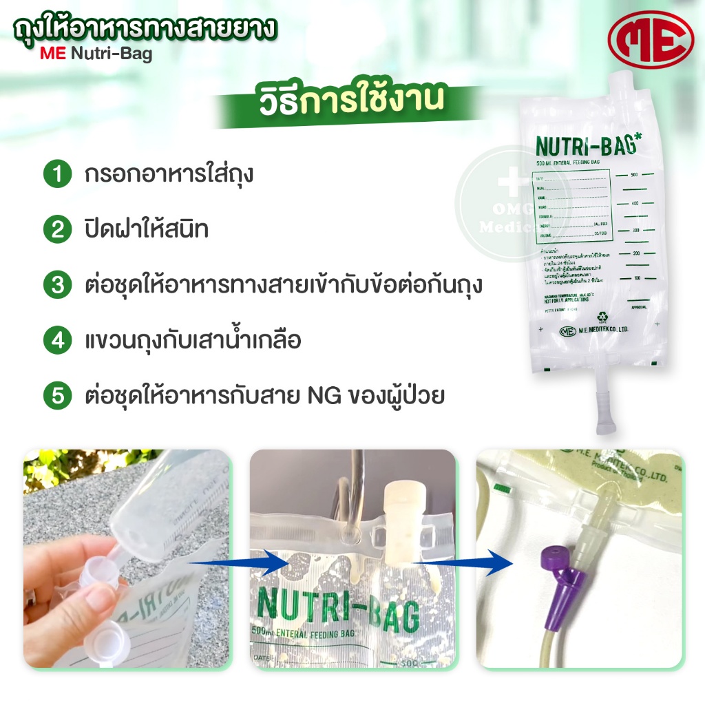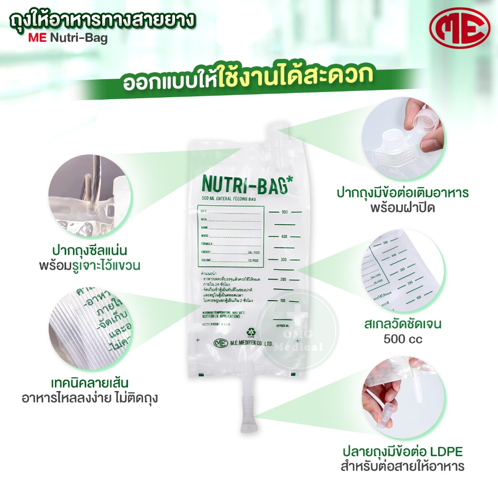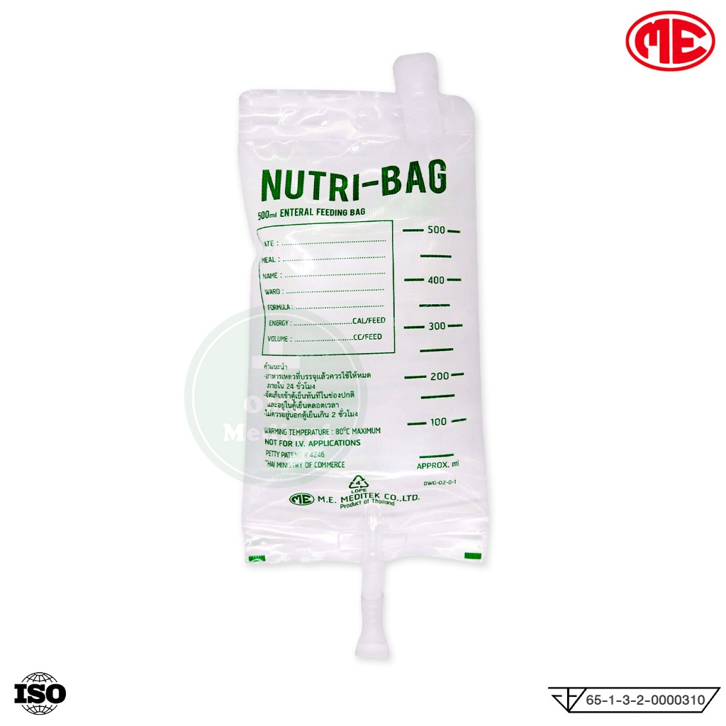 ถุงให้อาหาร NUTRI-BAG ขนาด 500cc ยี่ห้อ ME (แพ็ค 10 ชิ้น) ถุงให้อาหารทางสายยาง ถุงใส่อาหารเหลว ใช้แล้วทิ้ง Feeding Bag