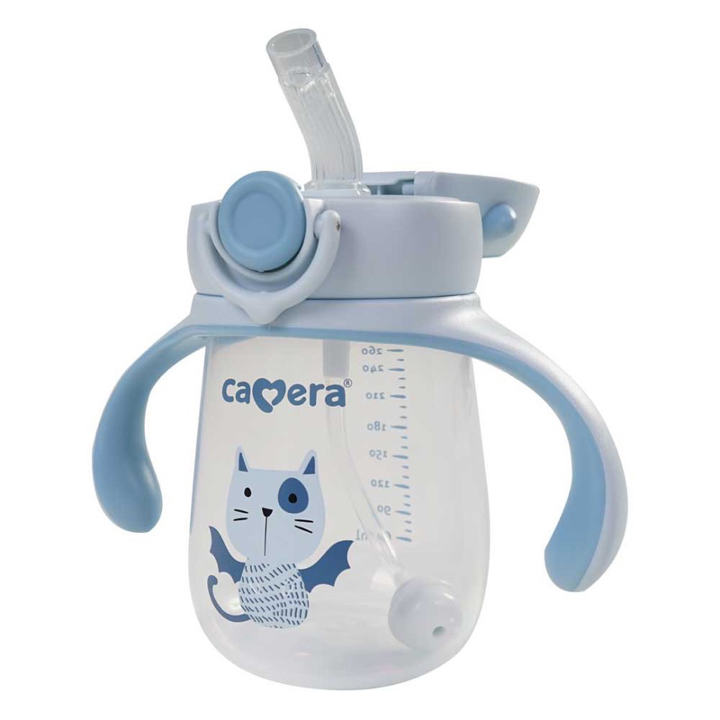 ถ้วยหัดดื่ม Camera ฝาสไลด์-หลอดเด้ง-สา ยตุ้ม นอนดูดน้ำไม่หก ขนาด 9 ออนซ์ สำหรับเด็ก 6 เดือนขึ้นไป