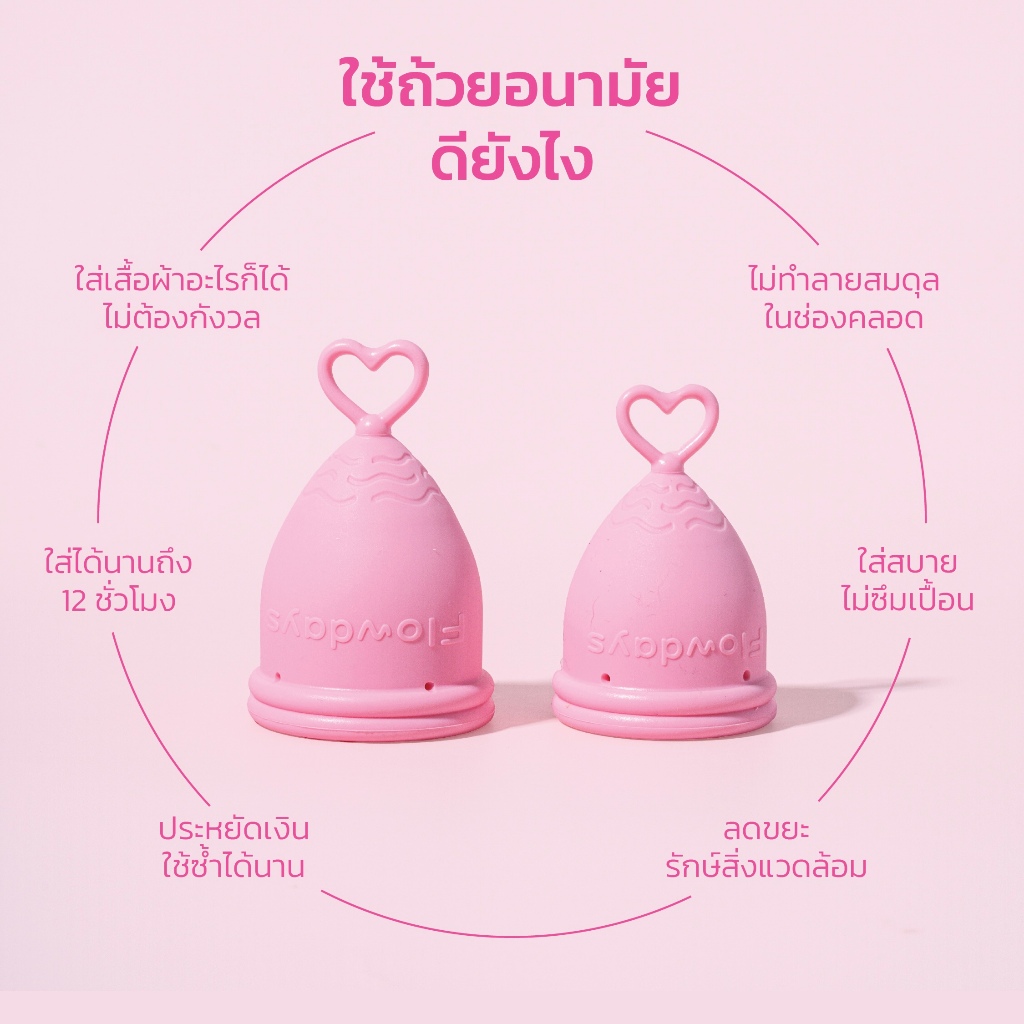 ถ้วยอนามัย FlowDays SizeB Heavy flow 5 สี เลือกสีได้ ใช้งานง่าย สบาย ใช้ซ้ำได้