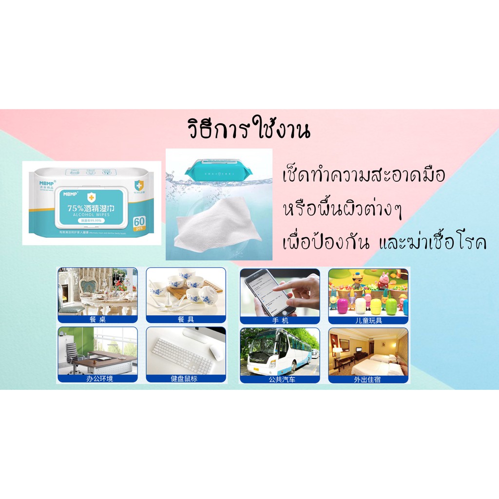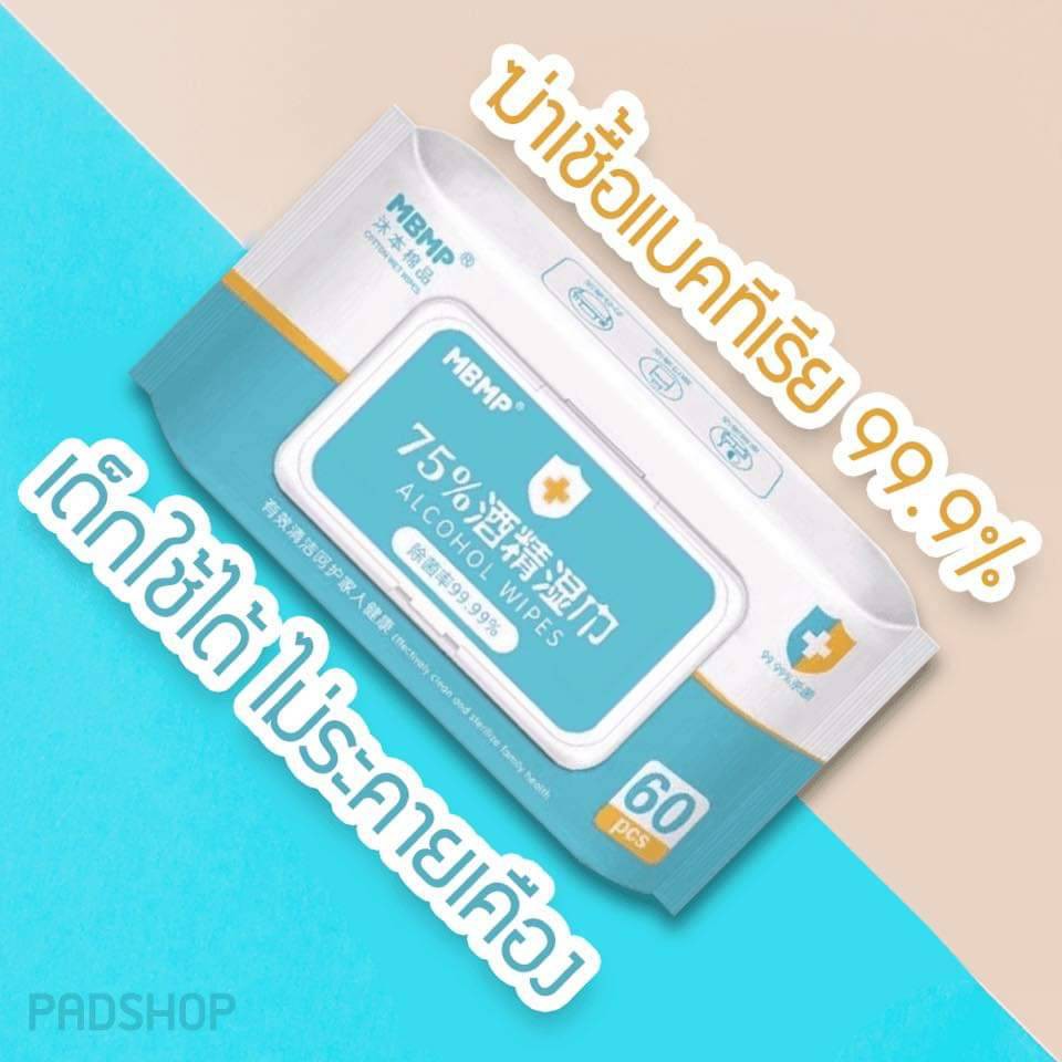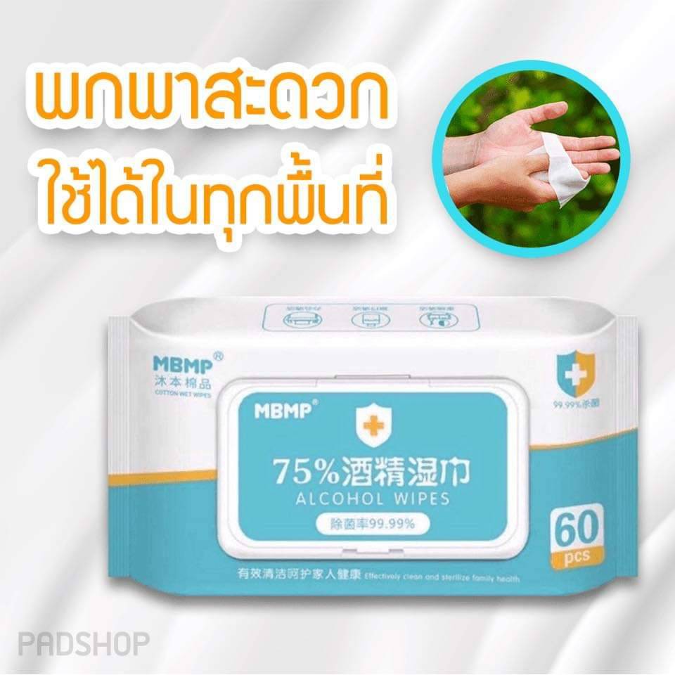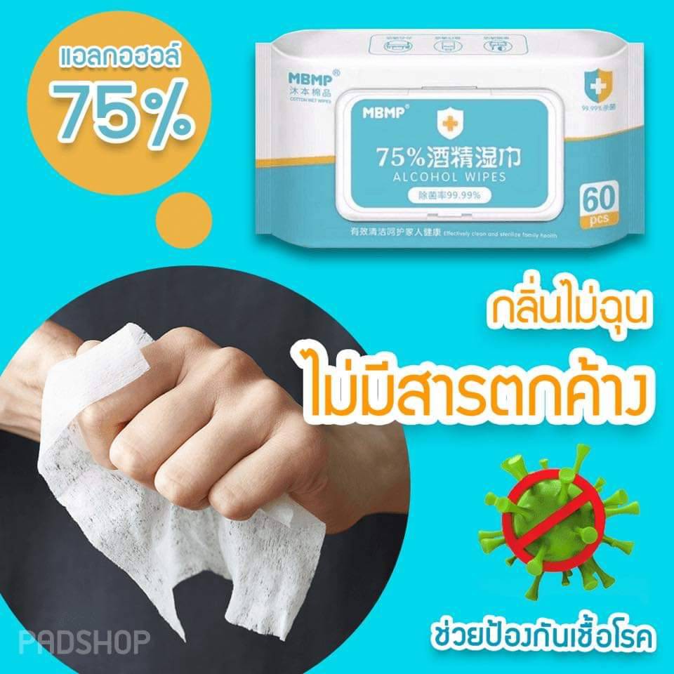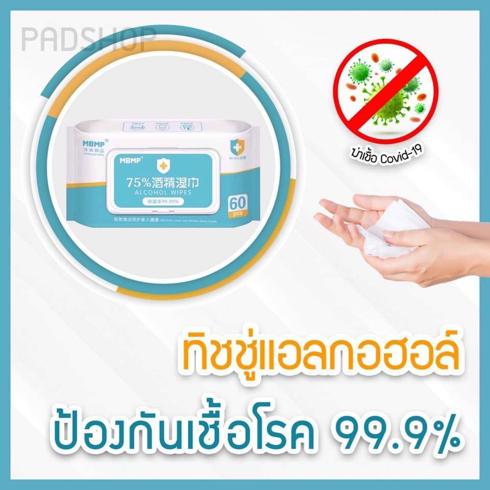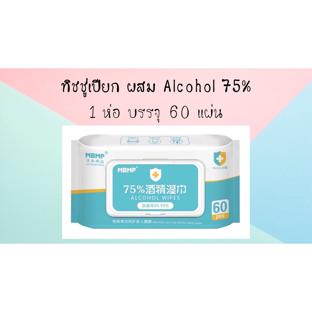 ทิชชู่เปียกผสมแอลกอฮอล์ 75% จำนวน 60 แผ่น