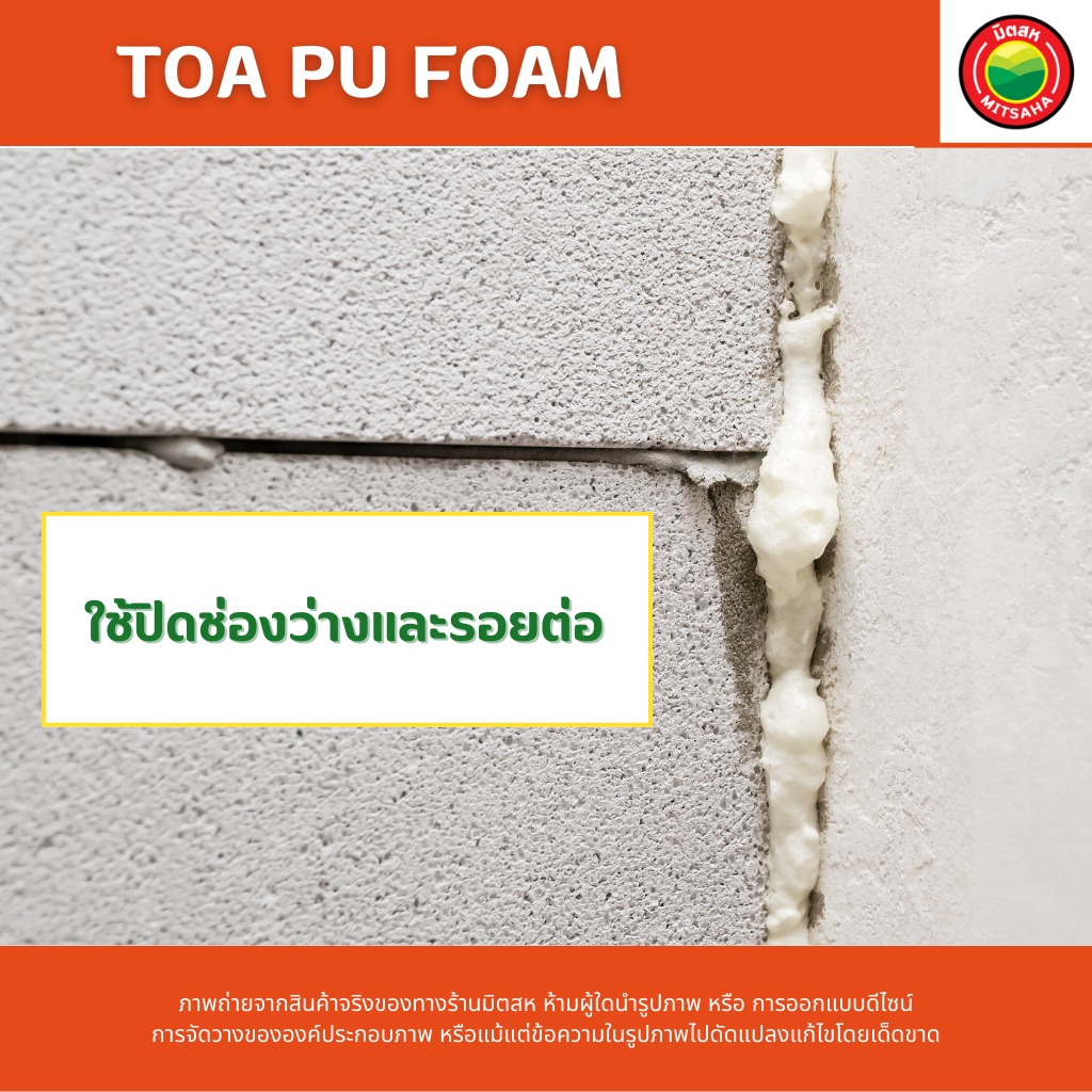 ทีโอเอ พียูโฟม TOA PU FOAM ขนาด 500ml สเปรย์ โฟม อุด กันรั่ว รอยร้าว ผนัง กำแพง โพลียูรีเทน หลังคา ข ยายตัว มิตสห Mitsaha