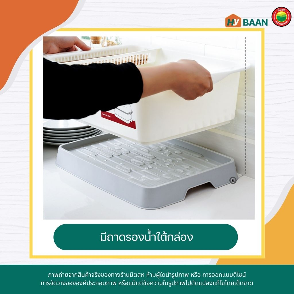ที่คว่ำจานมีฝาปิด Dish drainer with lid มี 2 ขนาด 29x38x27cm, 34x43x30cm สีขาว ชุด ชั้น คว่ำ จาน ที่วาง ชาม มิตสห hybaan