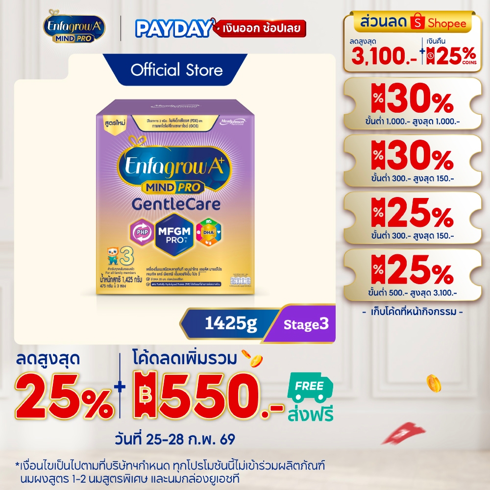 นมผง เอนฟาโกร เอพลัส มายด์โปร เจนเทิล แคร์ สูตร3 (1425 กรัม) Enfagrow A+ MindPro Gentle Care Stage3 (1425 g)