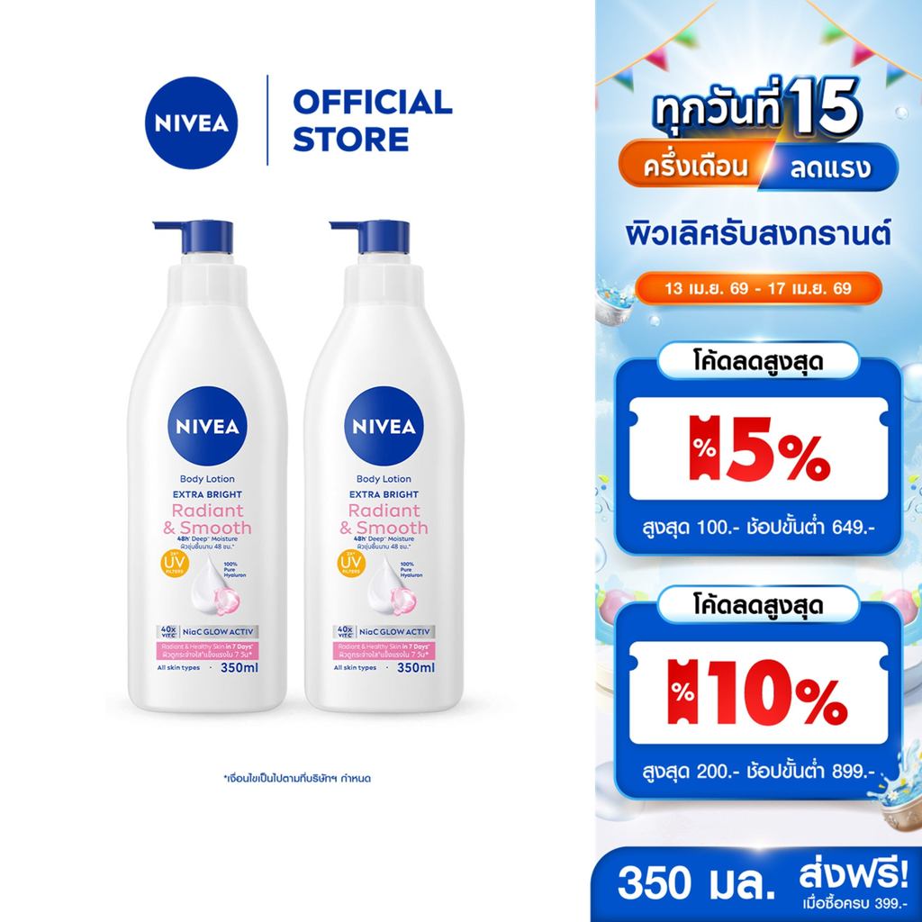 นีเวีย เอ็กซ์ตร้า ไบรท์ เรเดียนท์ แอนด์ สมูท บอดี้ โลชั่น 350 มล. 2 ชิ้น NIVEA
