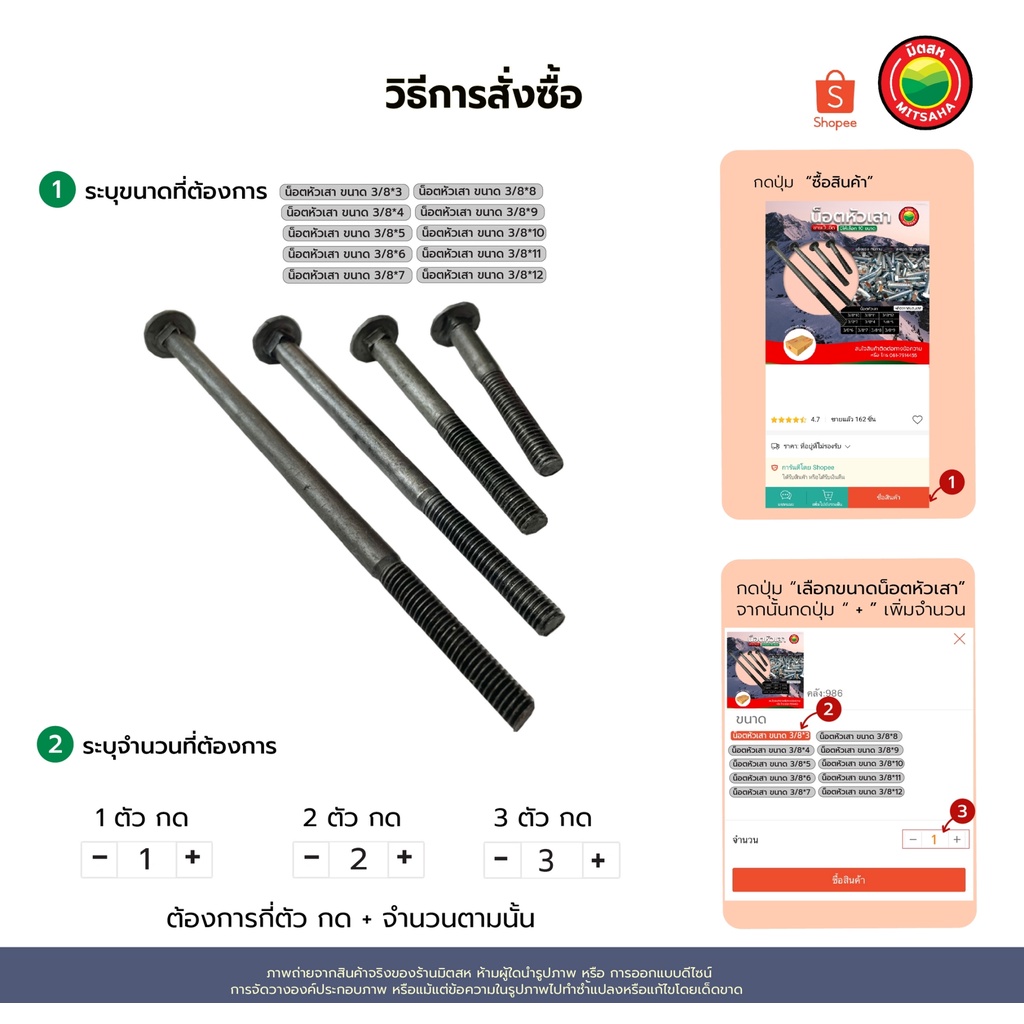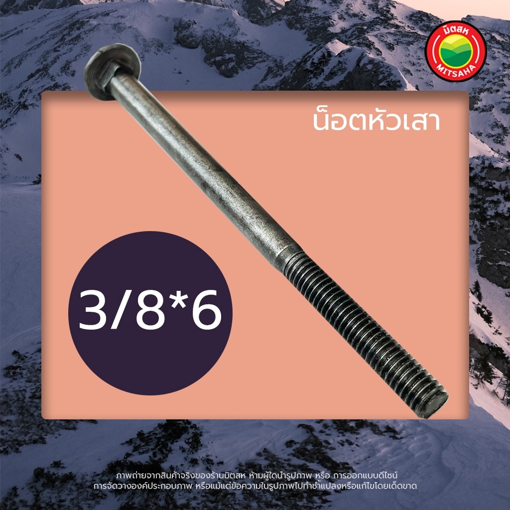 น็อต หัวเสา น็อตหัวกลม ขายเป็นตัว ขนาด 3หุน ยาวตั้งแต่ 3/8 x 3 - 12 นิ้ว CARRIAGE BOLT ขันไม้ ร้อยเสาไม้ เกลียวหุน มิตสห