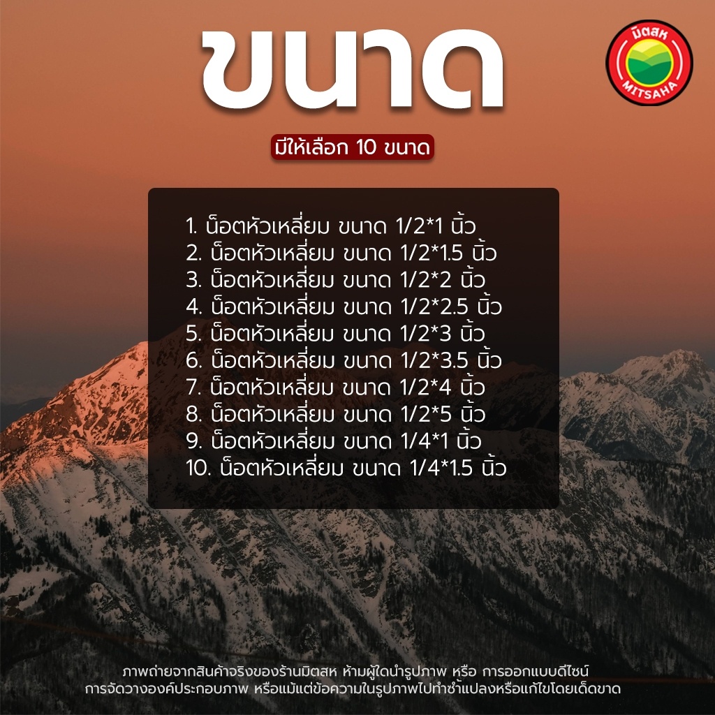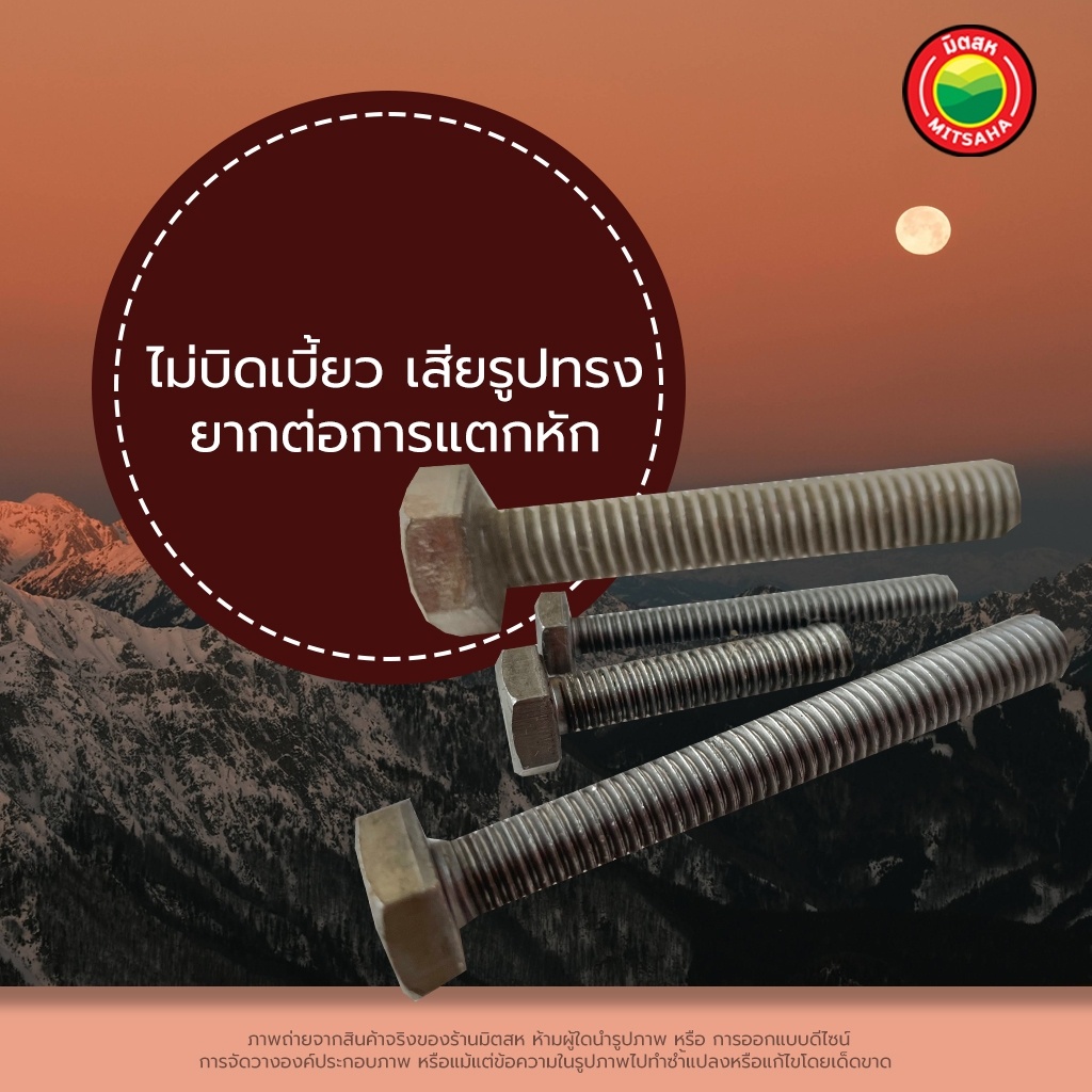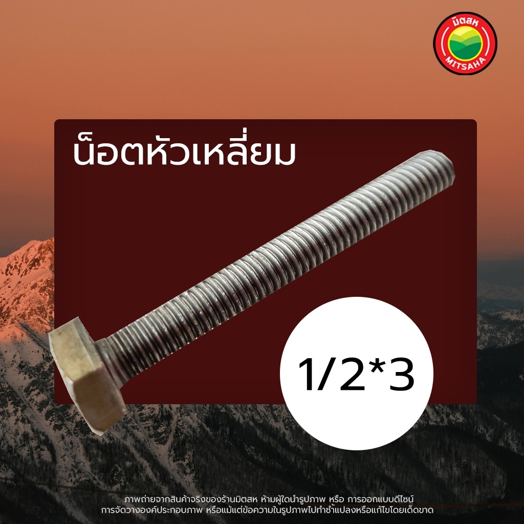 น็อต หัวเหลี่ยม ขายเป็นขีด ขนาด1/2x1,1/2x1.5,1/2x2,1/2x2.5,1/2x3,1/2x3.5,1/2x4,1/2x5,1/4x1,1/4x1.5นิ้ว กรู หัวน็อต มิตสห