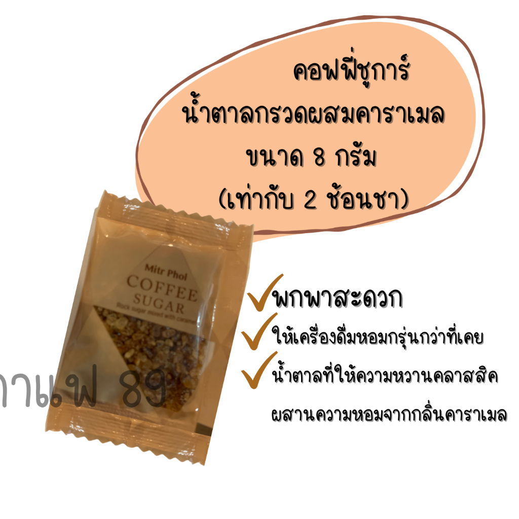 น้ำตาลกาแฟ ซองเดี่ยว ขนาดพกพา น้ำตาลกรวดผสมคาราเมล แบบซอง ขนาด 8 กรัม แพ็คละ 30 ซอง