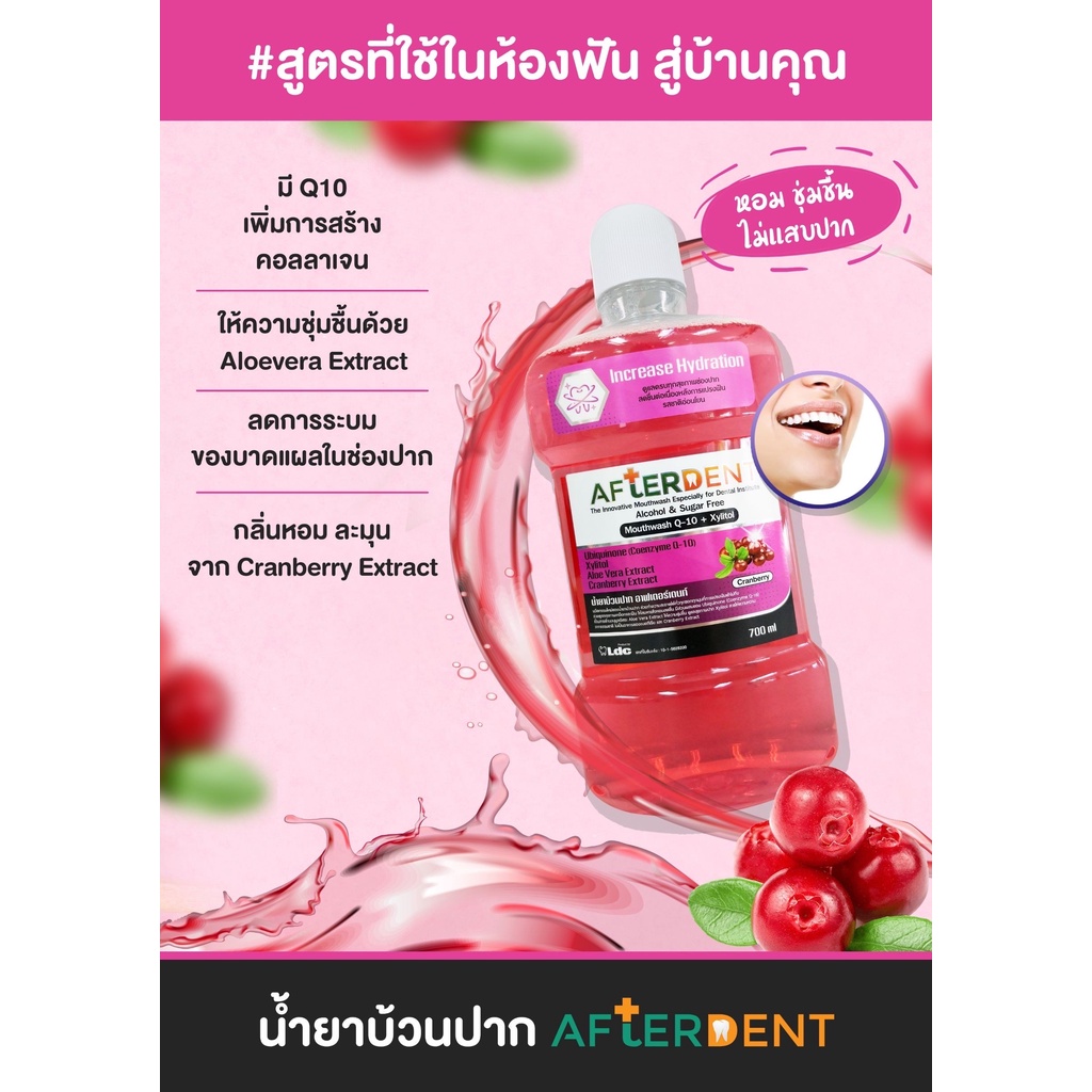 น้ำยาบ้วนปาก AFTERDENT สดชื่น ลดการระบมของบาดแผลในช่องปาก [กลิ่นแครนเบอรี่, มินท์]