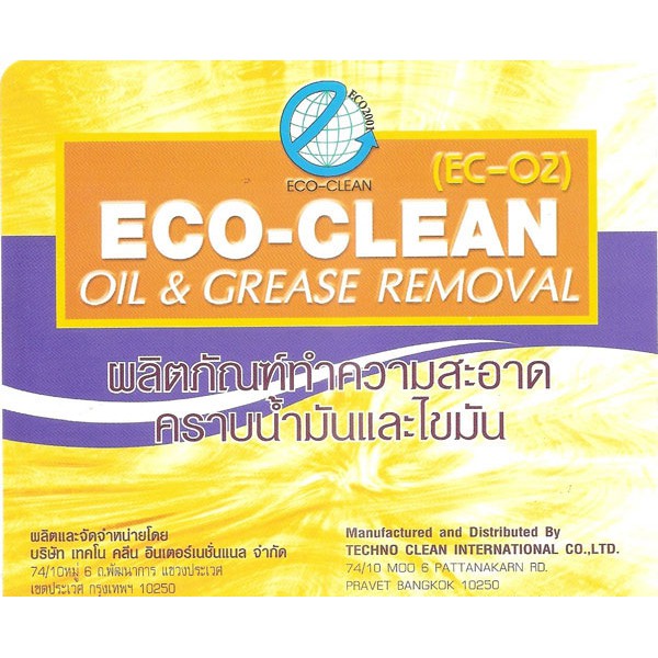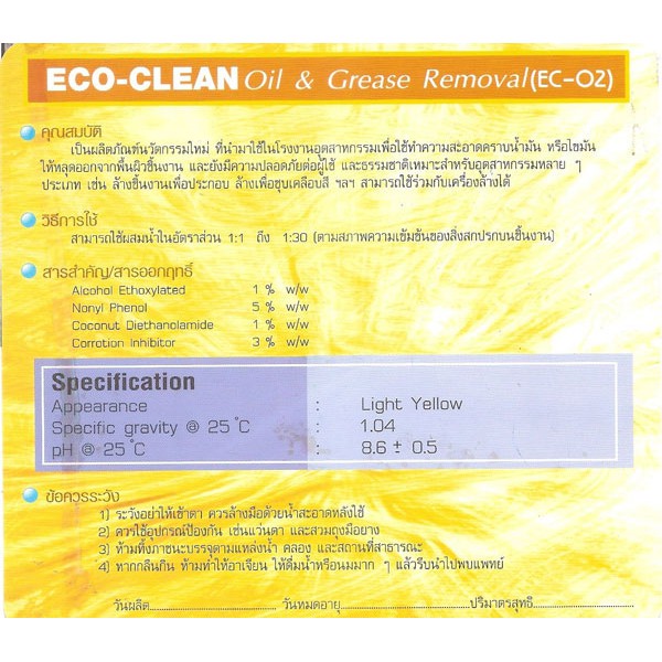 น้ำยาล้างคราบน้ำมัน ไขมัน จารบี มาตรฐาน ISO ECO - CLEAN EC-02 น้ำยาชีวภาพ (OIL & GREASE REMOVAL) ขนาด 4 ลิตร ราคาถูก