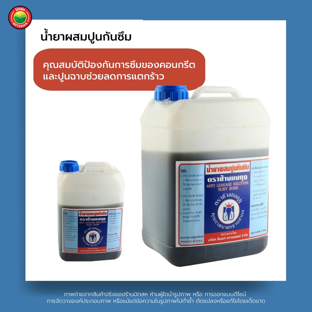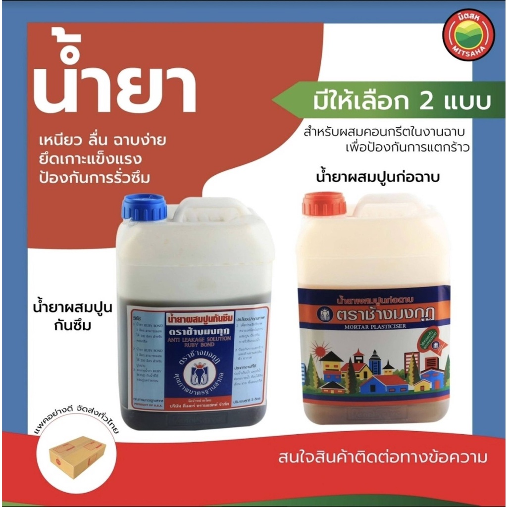 น้ำยา ผสมปูน กันซึม ก่อฉาบ ตรา ช้างมงกุฎ คอนกรีต 5 ลิตร MORTAR PLASTICIZER ซีเมนต์ กันรั่ว ซึม ก่ออิฐ รอยแตกร้าว มิตสห