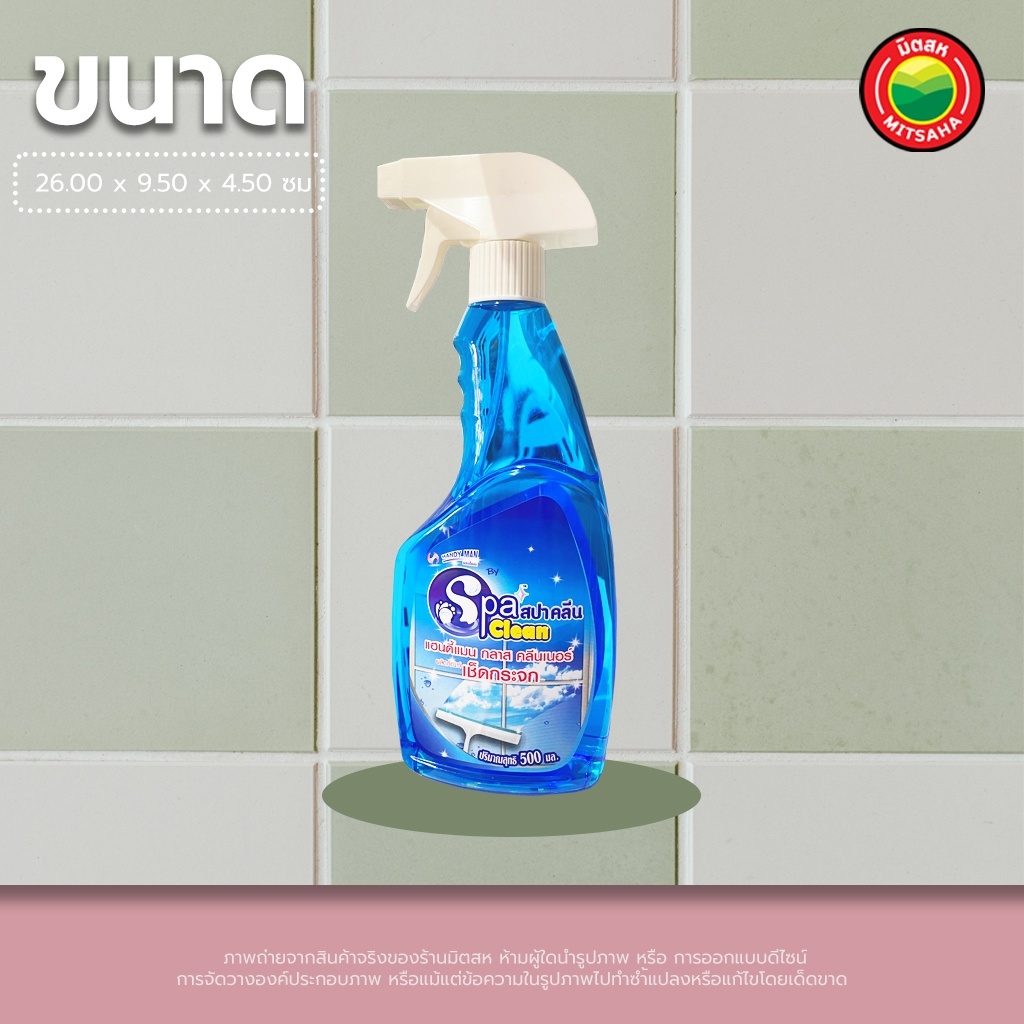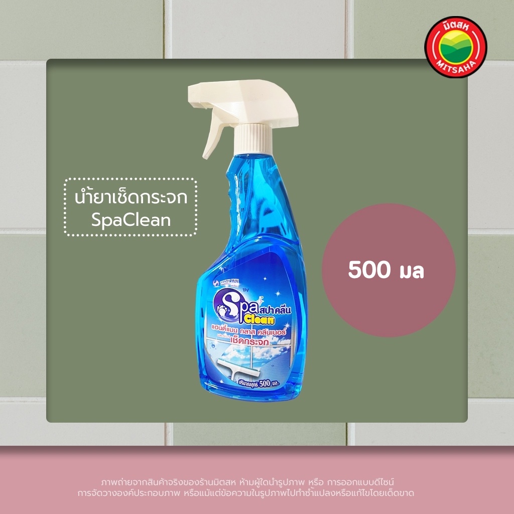 น้ำยา เช็ดกระจก ทำความสะอาด ขายเป็นขวด 500 มล. ขจัด ขัด คราบน้ำ ยี่ห้อ SpaClean ขวดหัวฉีด Glass Cleaner กระจกบ้าน มิตสห
