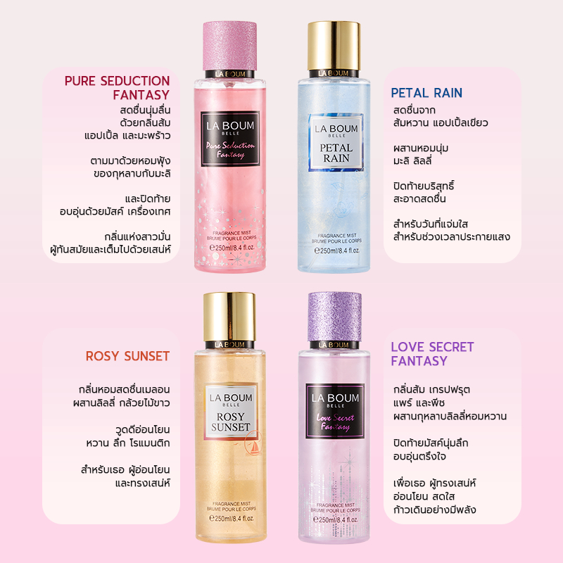 น้ำหอมBody Mist Shimmer Fragrance 250ML กลิ่นดอกไม้หอมสดชื่น กลิ่น LA BOUM