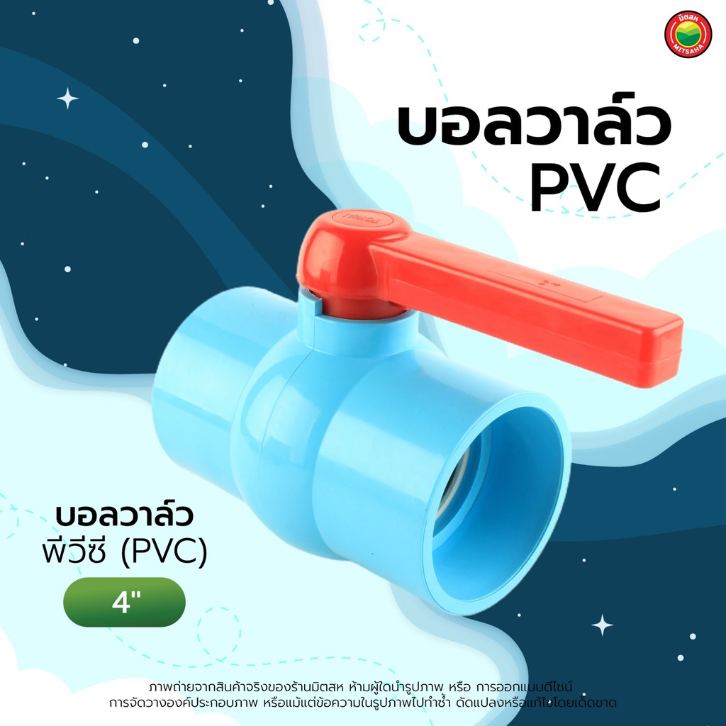 บอลวาล์ว พีวีซี PVC แบบสวม ขนาด 2นิ้ว, 3นิ้ว, 4นิ้ว BALL VALVE PVC สีฟ้า พลาสติก ก้านแดง ก๊อก วาล์ว เปิด-ปิด น้ำ มิตสห