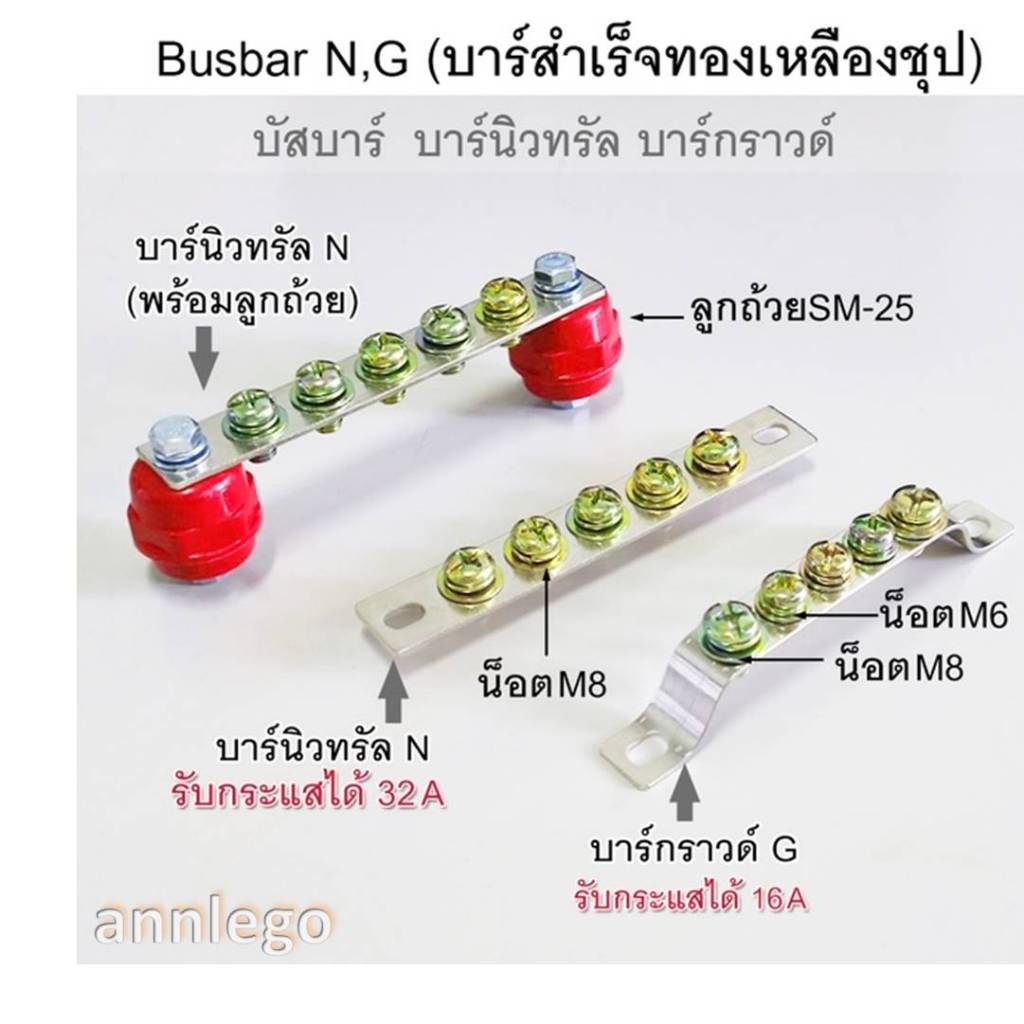 บัสบาร์ (บาร์สำเร็จทองเหลืองชุป zinc) บาร์นิวทรัล บาร์กราวด์ พร้อมน็อต
