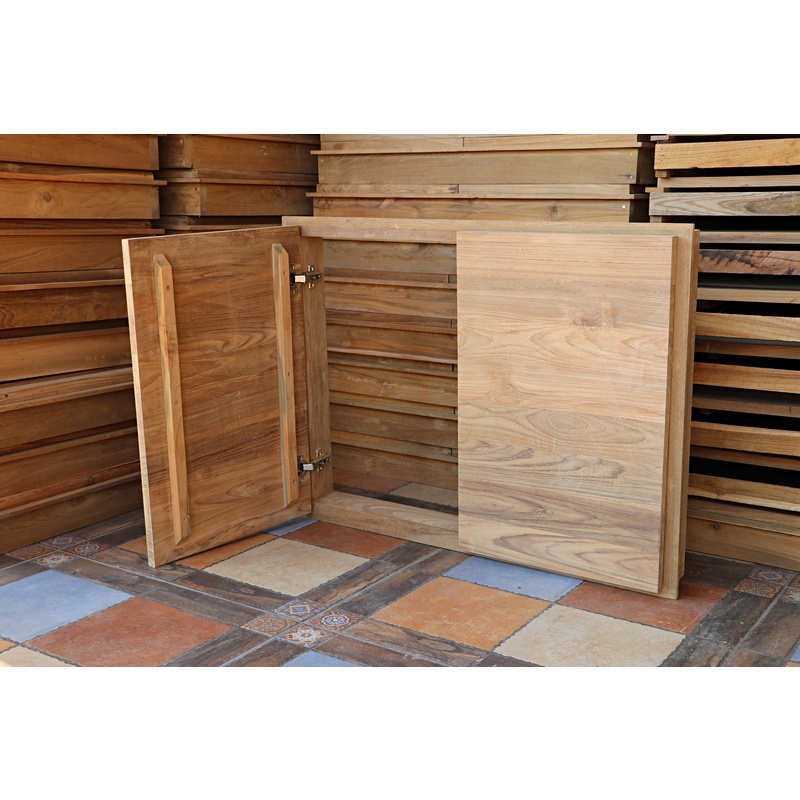 บานซิงค์ใต้เคาเตอร์ครัวปูน บานคู่เรียบหนา สไตล์โมเดิร์น ไม้สักเก่าสักแห้ง ⏩ส่งฟรี✅