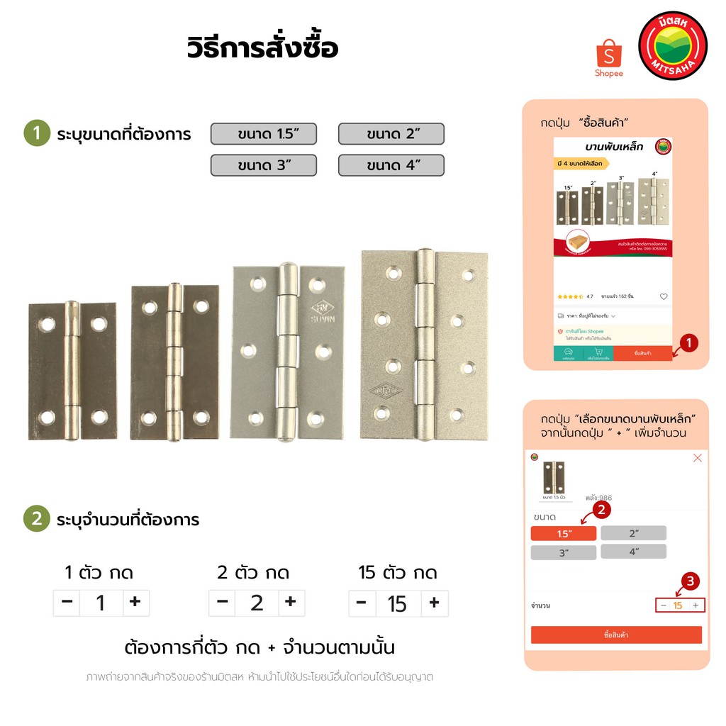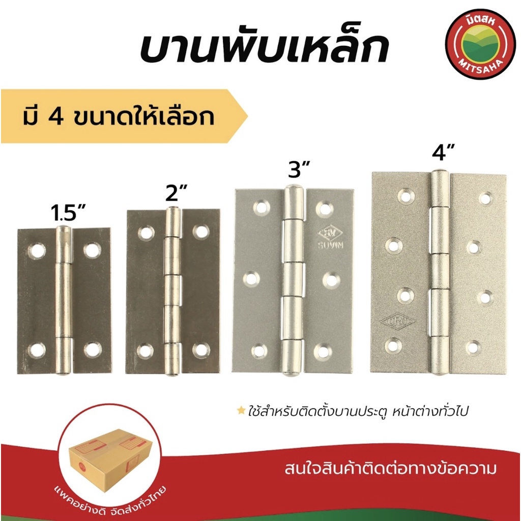 บานพับ บานพับเหล็ก มิตสห บานพับประตูเหล็ก สีบรอนซ์เงิน ขนาด1.5”,2”,3”,4” ElectroplatedSteelHinge, SteelHinge บานพับประตู