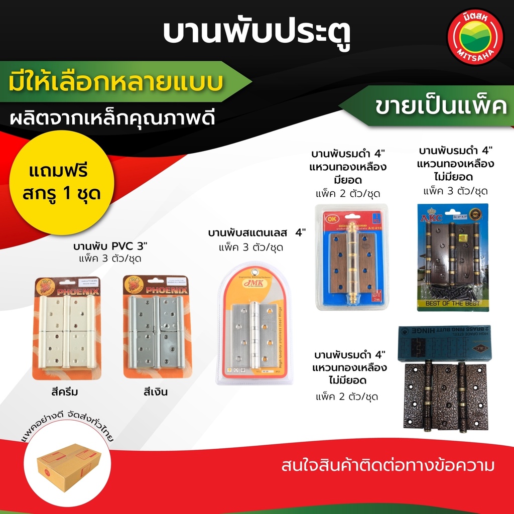บานพับ รมดำ เหล็ก พีวีซี PVC แหวน ทองเหลือง 3นิ้ว 4นิ้ว สี เงิน สแตนเลส BUTT HINGE ประตู มุ้งลวด ปีกผีเสื้อ มียอด มิตสห