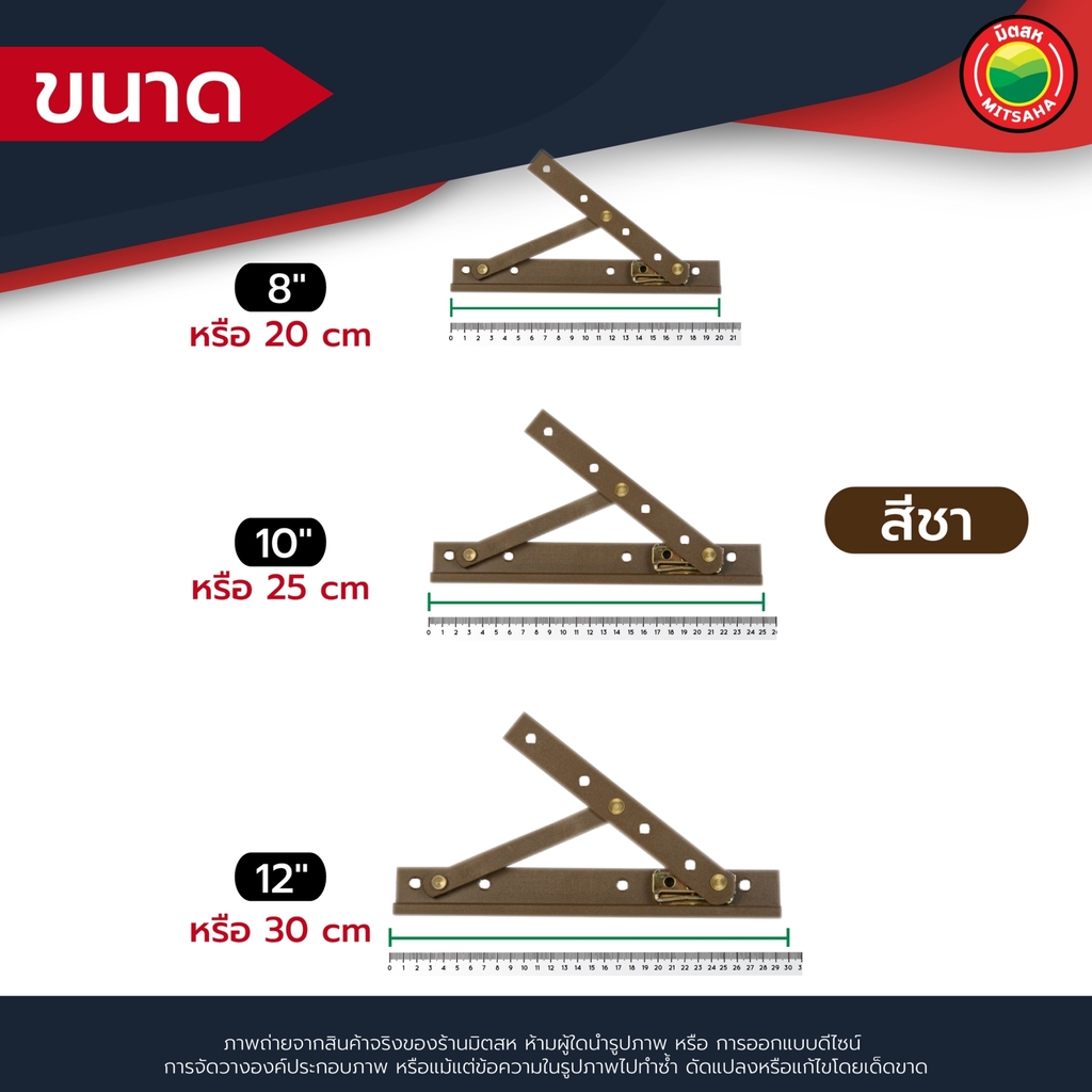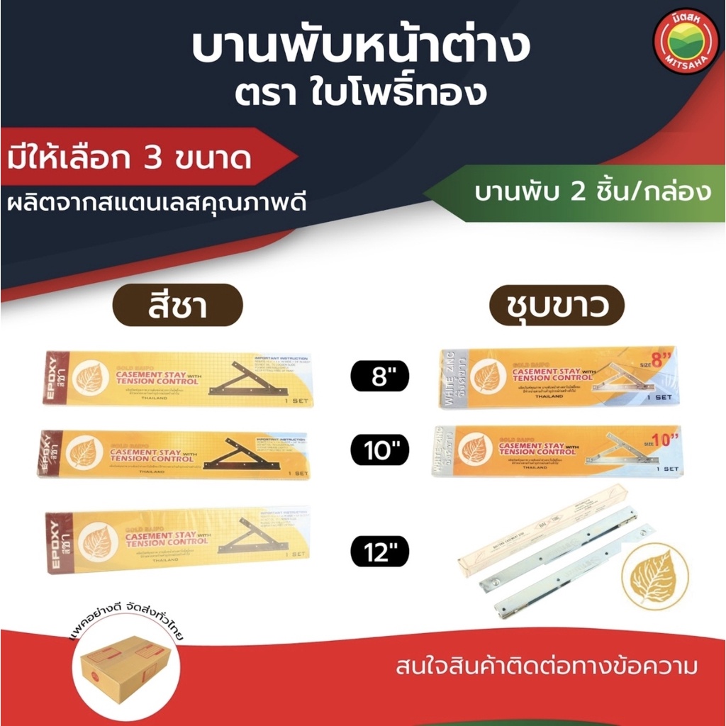 บานพับ หน้าต่าง ปรับมุม สี ชา ชุบขาว ขนาด 8 นิ้ว 10 นิ้ว 12 นิ้ว CASEMENT WINDOW HINGE เหล็ก สแตนเลส ตราใบโพธิ์ทอง มิตสห