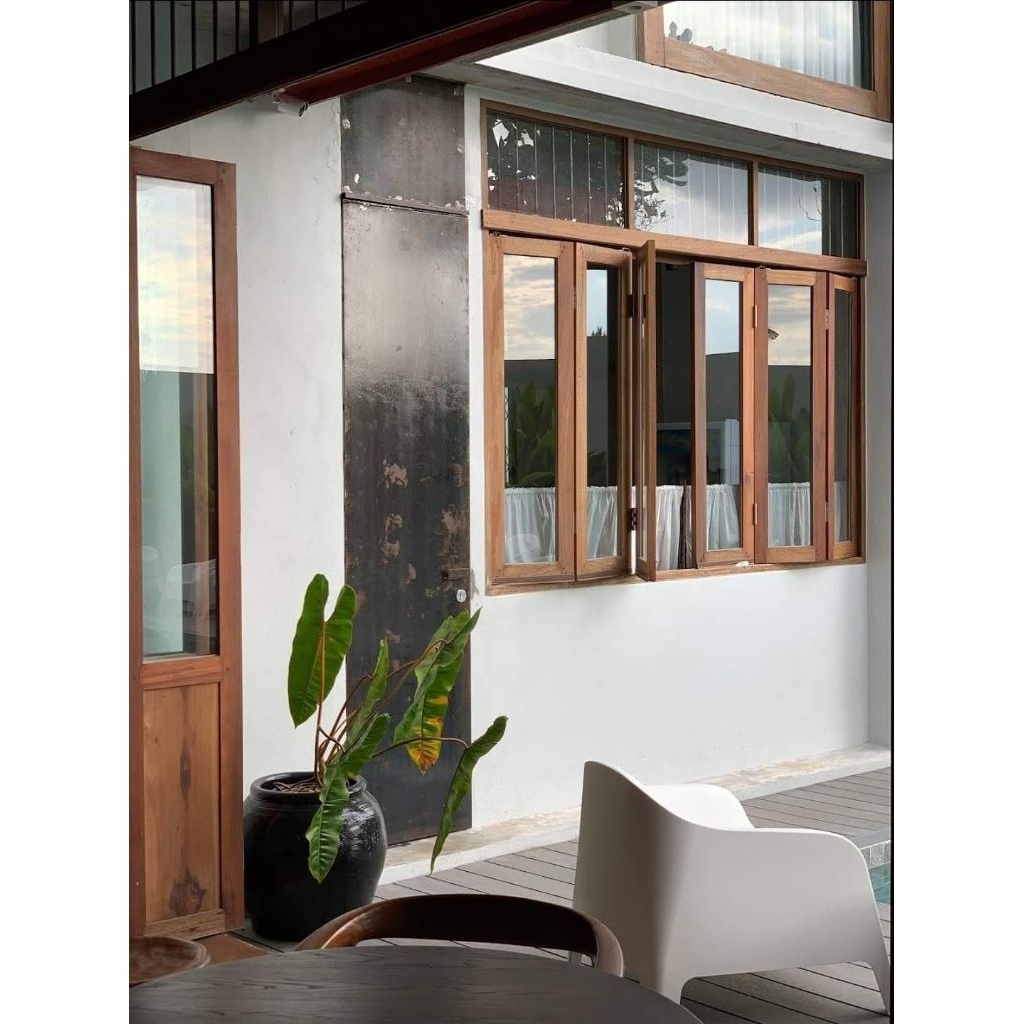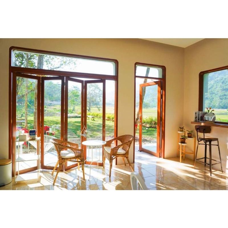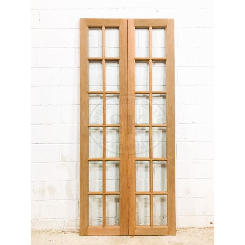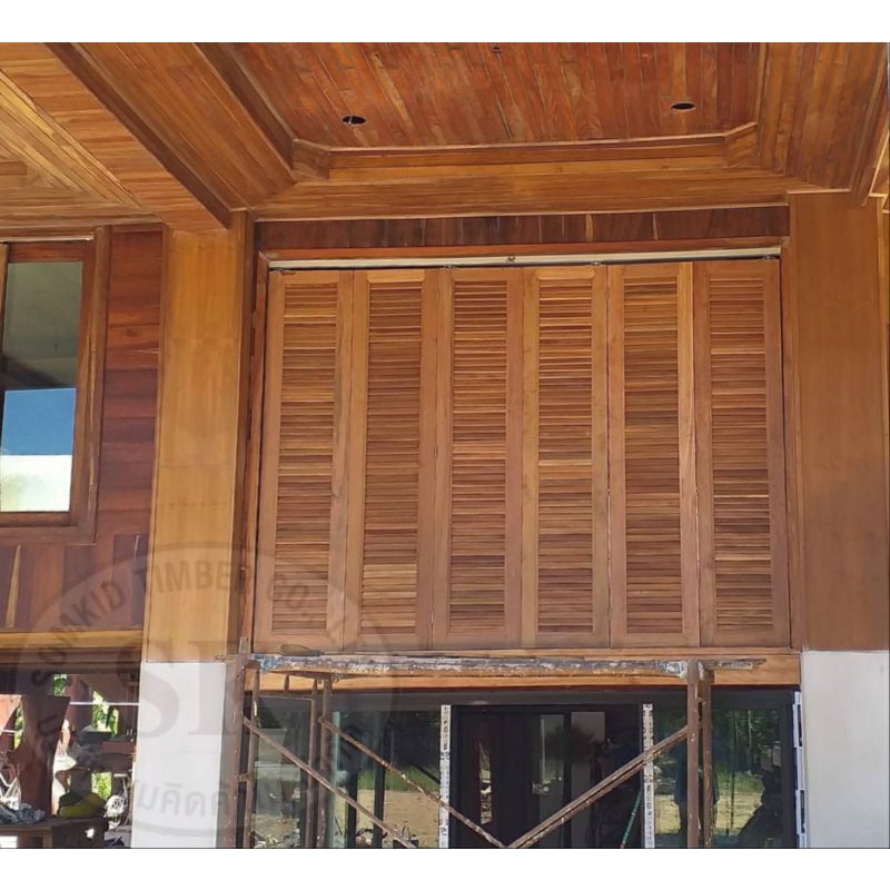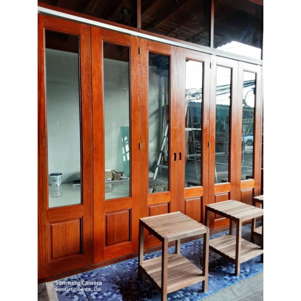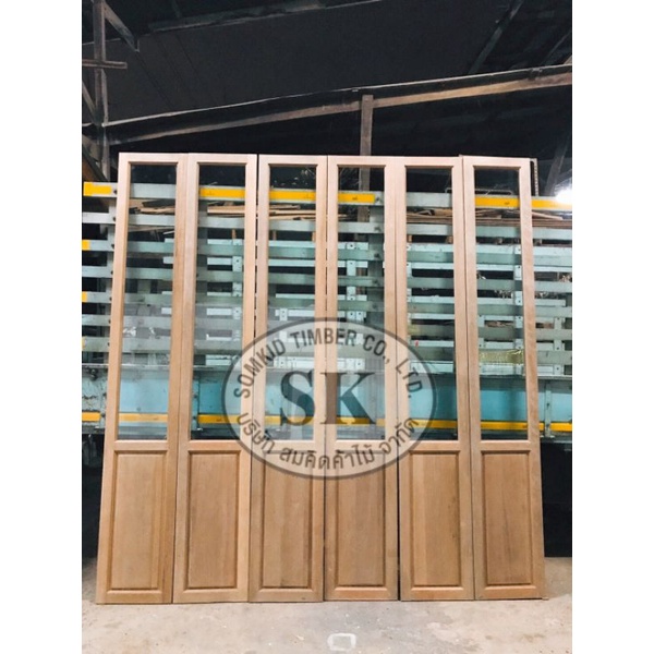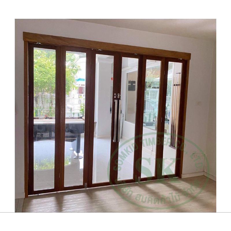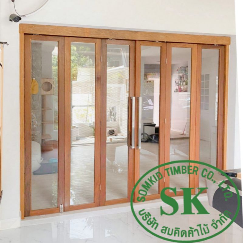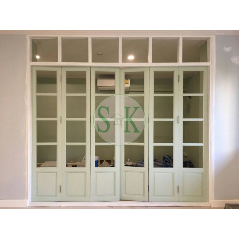 SK0017 บานเฟี้ยมไม้พร้อมกระจกHafeleอุปกรณ์รางเลื่อนและวงกบครบชุด