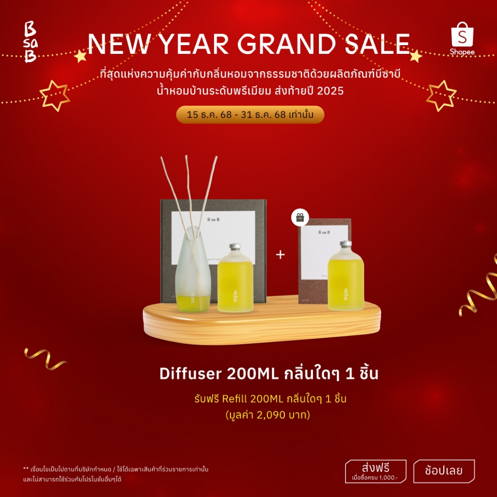 บีซาบี น้ำหอมบ้านก้านไม้กระจายกลิ่นปริมาณ 200 มล. / BsaB Diffuser Oil 200ML 1 ชิ้น