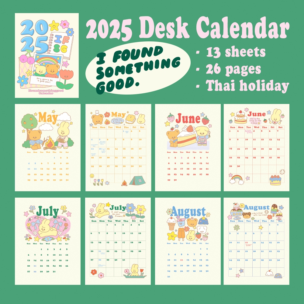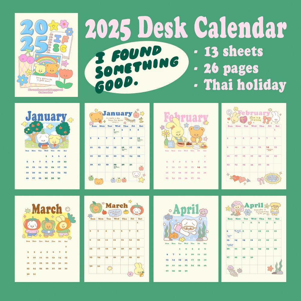ปฏิทินตั้งโต๊ะปี 2568/2025 ขนาด 6*8 นิ้วลายมินิมอลน่ารัก มีวันหยุดไทย มีสติ๊กเกอร์แถม I Found Something Good
