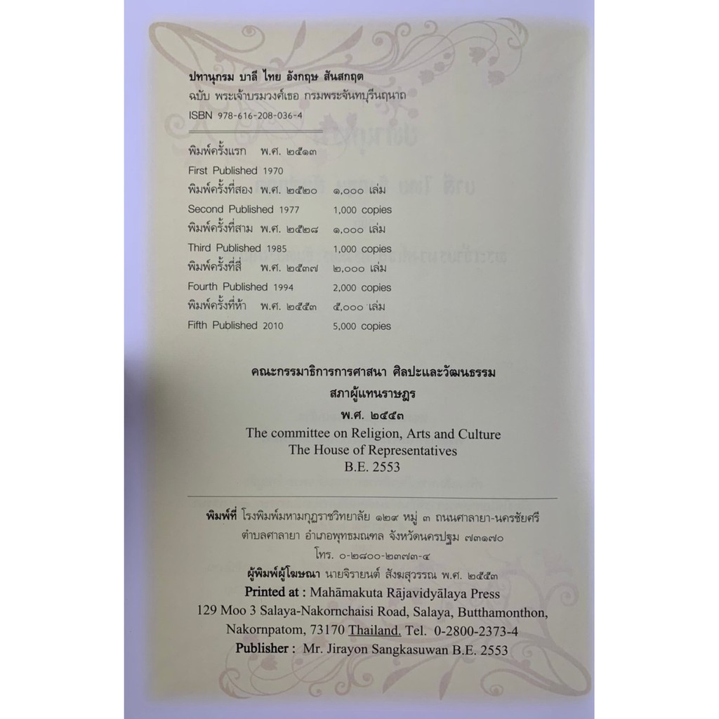 ปทานุ กรมบาลี ไทย อังกฤษ สันสกฤต ปกแข็ง พจนานุกรม
