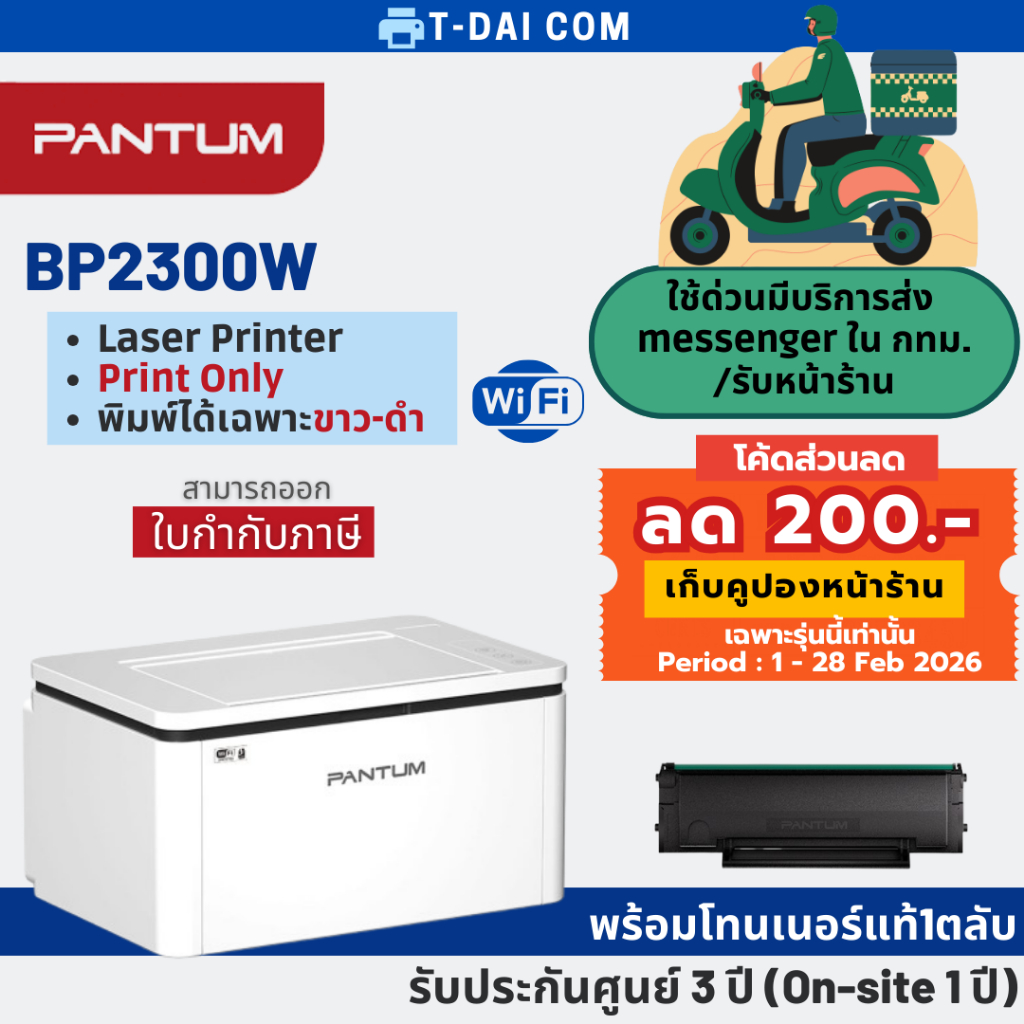 เครื่องพิมพ์เลเซอร์ PANTUM BP2300 / BP2300W ขาว-ดำ Print only รับประกัน 3 ปี Onsite