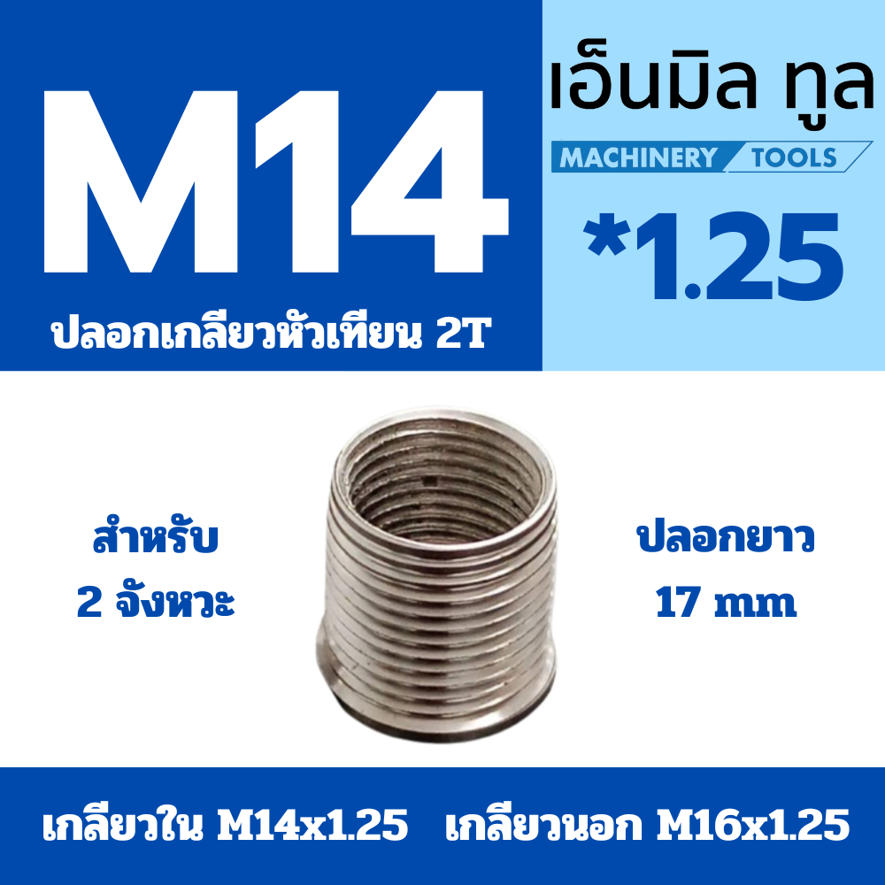 ปลอกเกลียวหัวเทียน สแตนเลส 4T ขนาดเกลียวใน M10x1.0 ปลอกเกลียวนอก M12x1 และ 2T ขนาดเกลียวใน M14 x1.25 ปลอกนอก M16x1.25