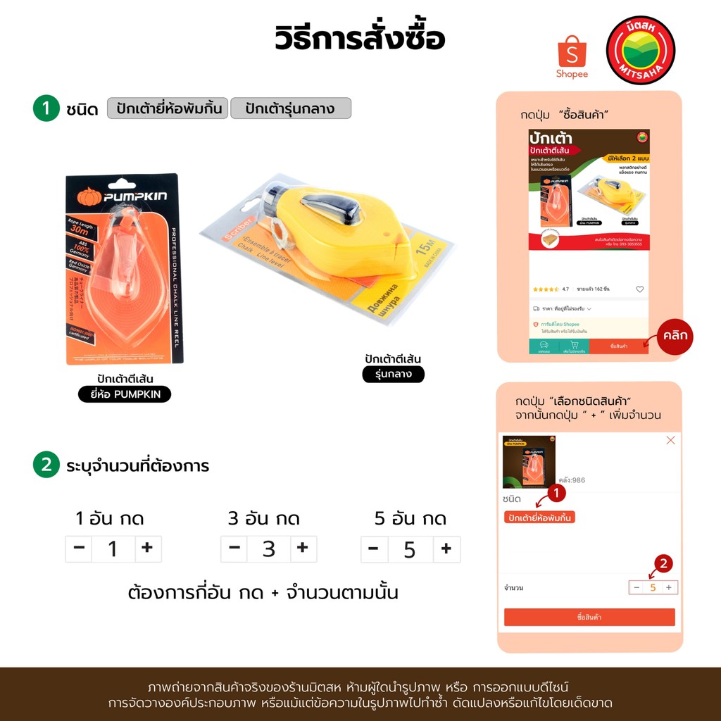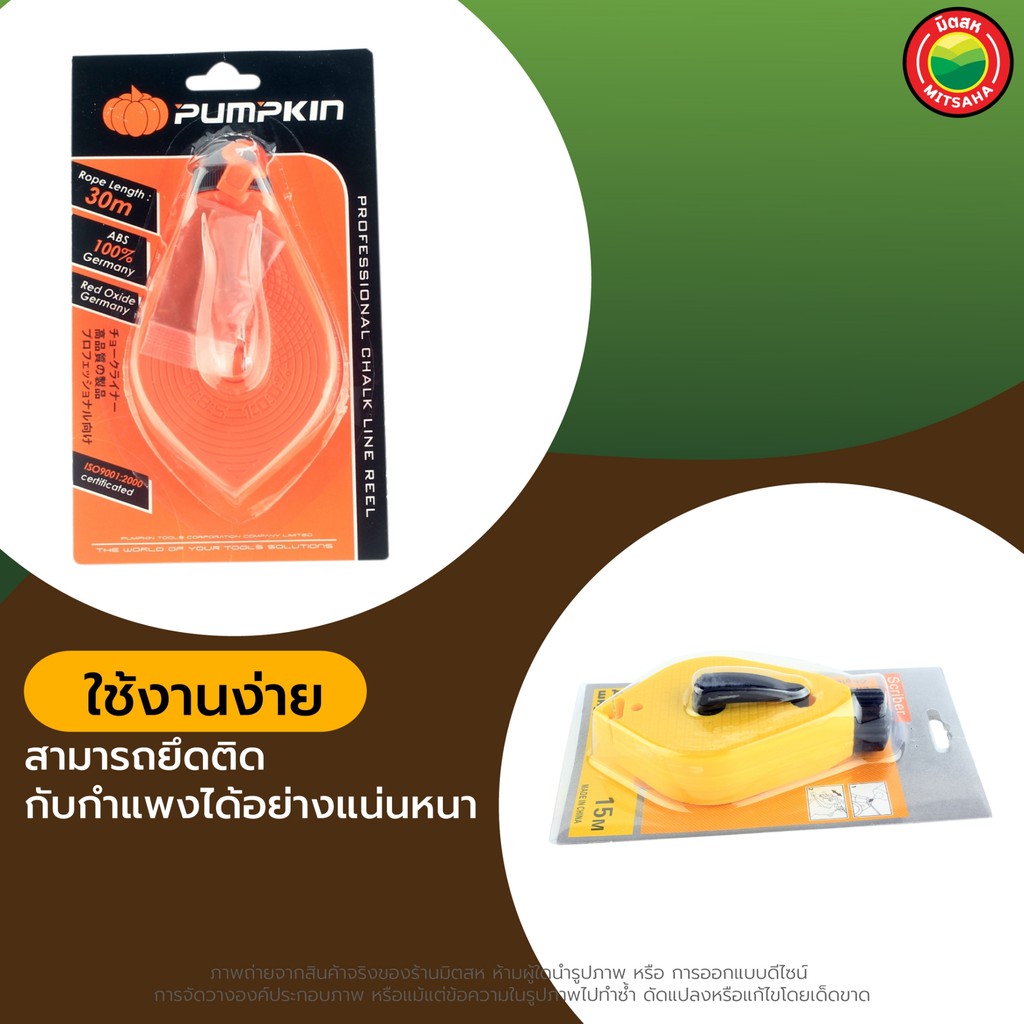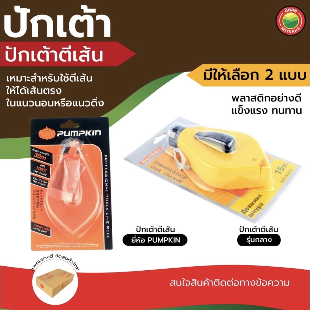 ปักเต้า ตีเส้น ผงปักเต้า ผงชอล์ก สีแดง แนวเส้น ยาว 15ม, 30ม CHALK LINE REEL พัมคิน Pumpkin รุ่นกลาง บักเต้า มิตสห
