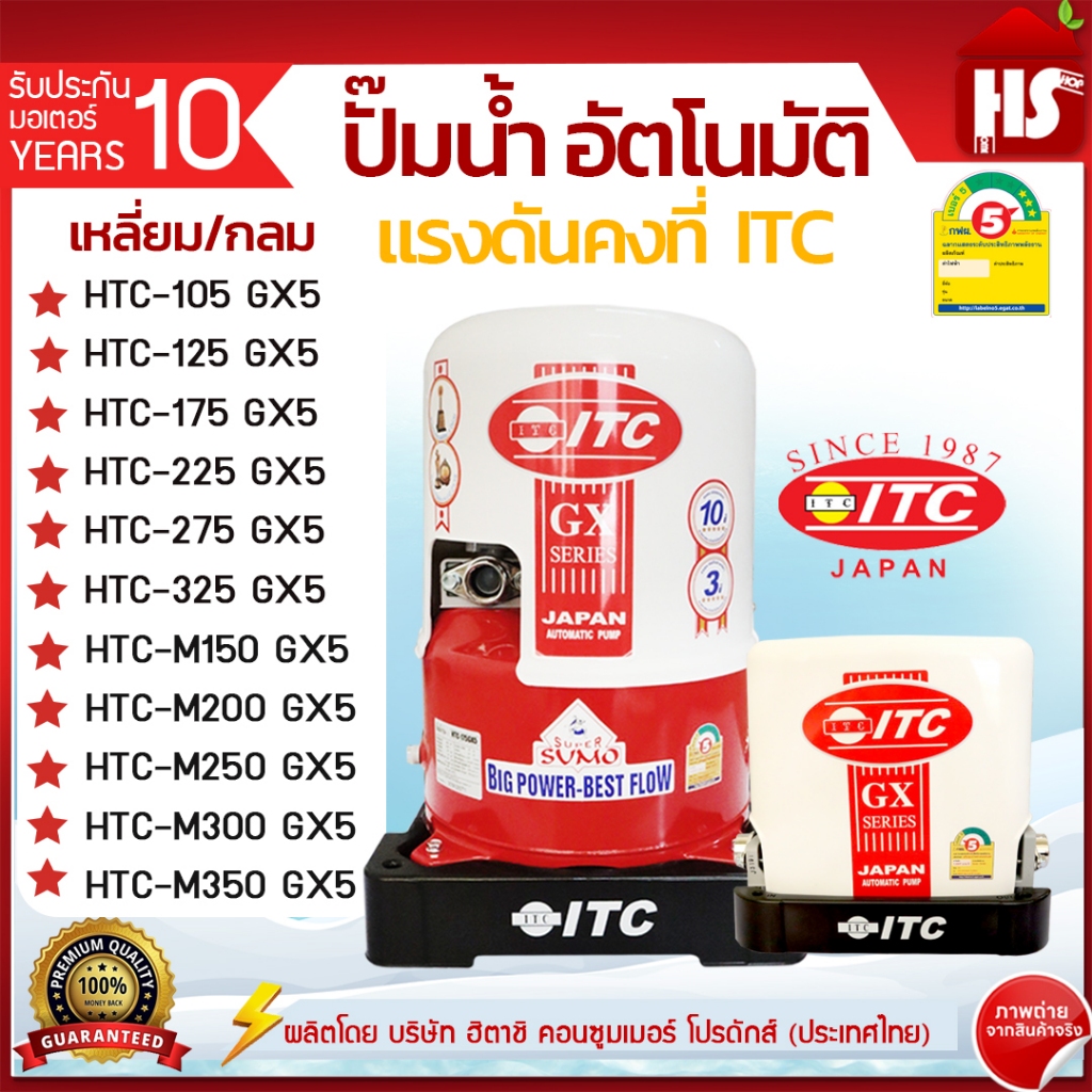 ปั๊มน้ำ ITC (ไอทีซี) ทุกรุ่น ปั๊มน้ำอัตโนมัติ แรงดันคงที่ HTC-105GX5 - HTC-325GX5 / HTC-M150GX5-HTC-M350GX5