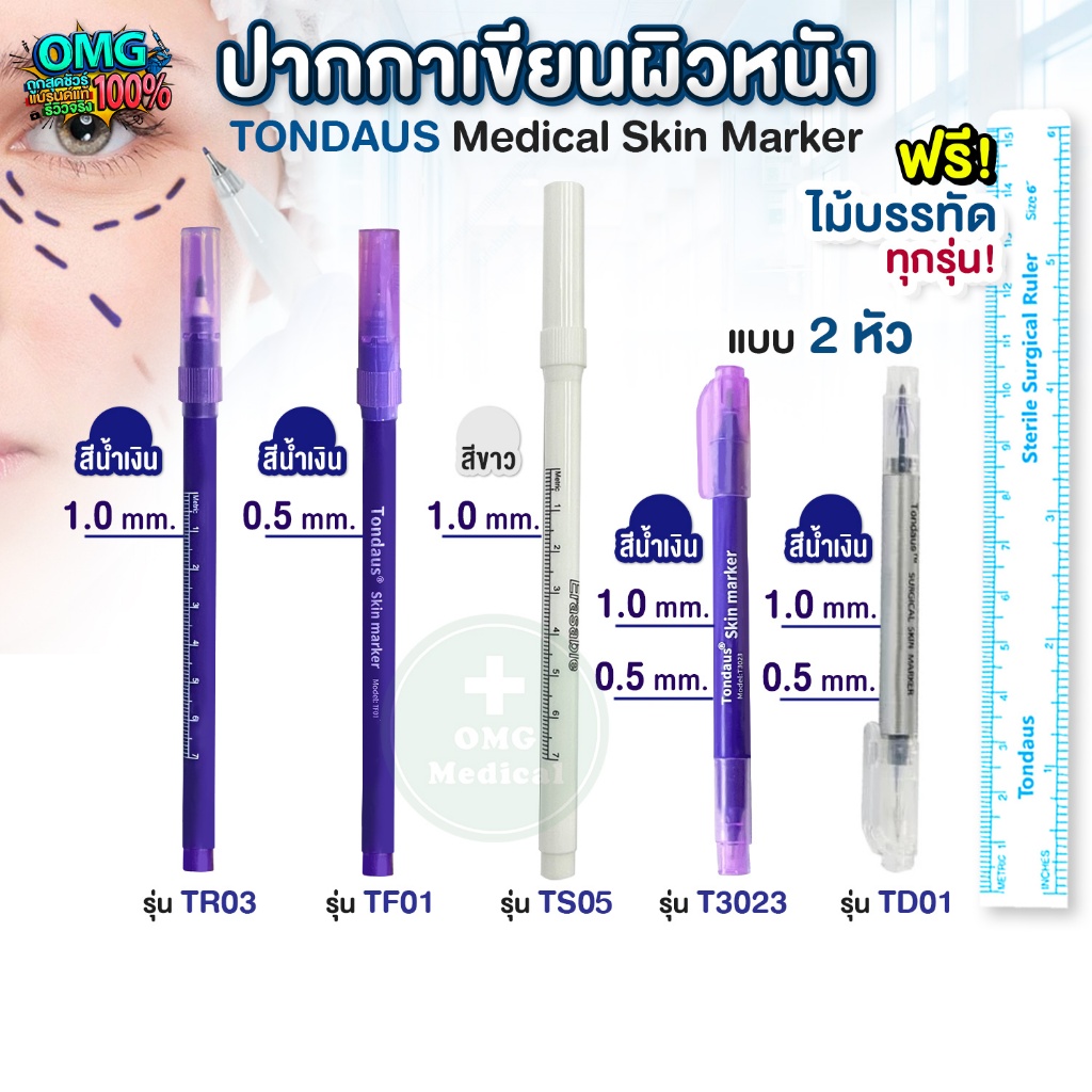 ปากกาเขียนผิวหนัง ทางการแ พทย์ TONDAUS Medical Skin Pen ปลอดเชื้อ สำหรับผ่าตัด ศัลยกรรม ปากกาสัก ร่างแบบ สักลาย