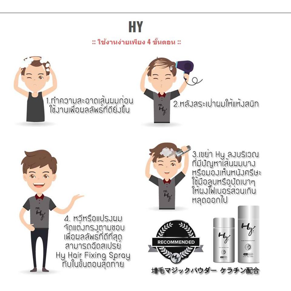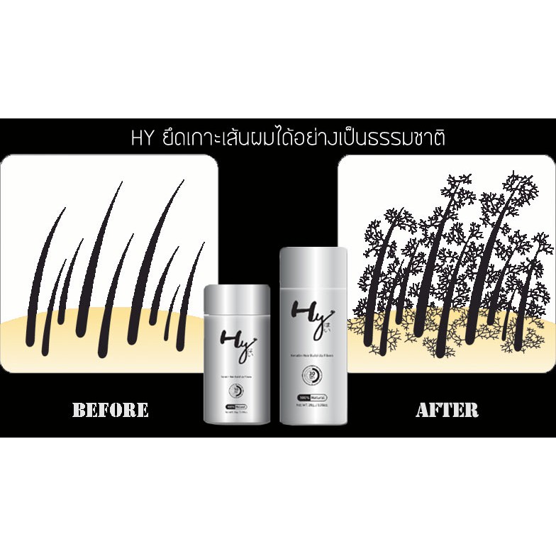 HY Hair Fiber ผงเคราตินไฟเบอร์ปิดผมบาง - สีดำ 28 กรัม