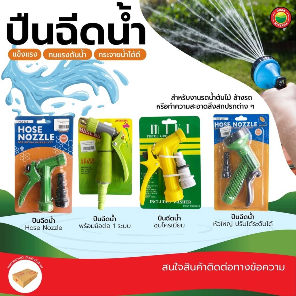 ปืนฉีดน้ำ หัวฉีดน้ำ ยี่ห้อ Baisagay, Miki, Jintianlong เล็ก ใหญ่ HOSE NOZZLE หัวทองเหลือง พลาสติก ปรับระดับ มิตสห