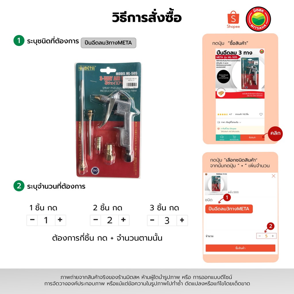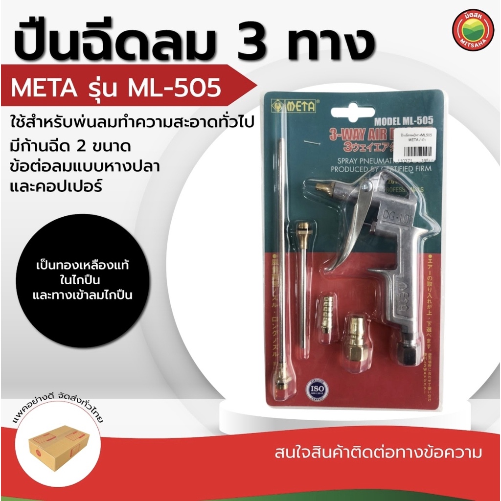 ปืน ฉีด ลม 3 ทาง Meta เมต้า ML 505 เหล็ก 3 WAY AIR DUSTER หัว ฉีด สั้น กลาง ยาว ทอง เหลือง คอปเปอร์ ข้อ ต่อ หางปลา มิตสห