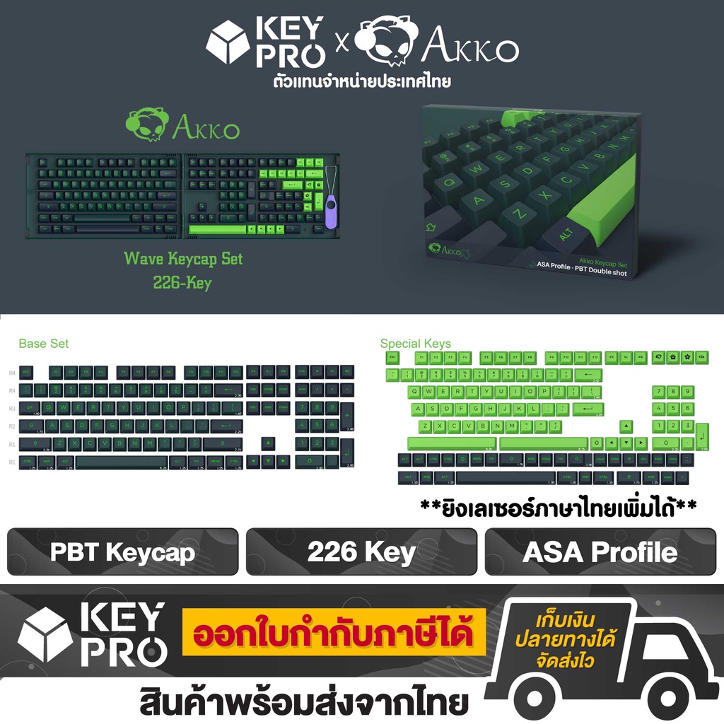 ปุ่มคีย์บอร์ด AKKO PBT Wave Keycap คีย์แคป 226 ปุ่ม ASA Profile
