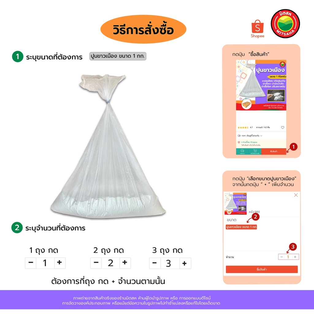 ปูนขาวเมือง ขนาด 1kg สีขาว WHITE CALCIUM ปูนขาว แบ่งขาย ปรับสภาพ โรย ต้นไม้ ดิน ผงละเอียด ฆ่าเชื้อรา บำบัด น้ำเสีย มิตสห