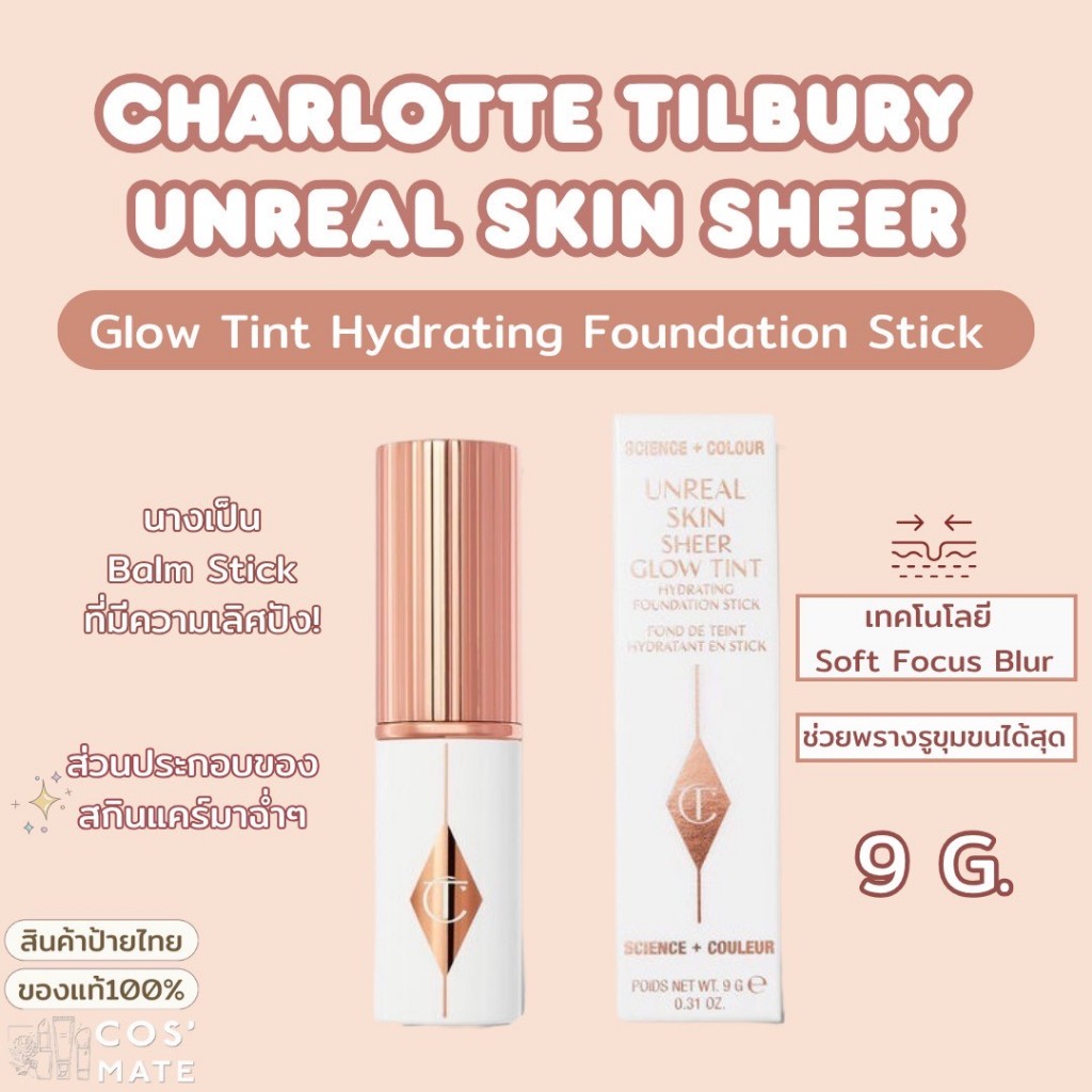 ป้ายไทย/ส่งไว - Charlotte Tilbury Unreal Skin Sheer Glow Tint Foundation Stick 9g.
